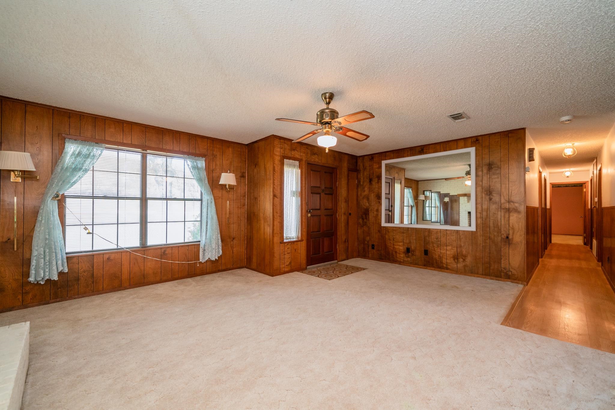 | Cute, cute country home that sits on 3.65 acres with a large shop, storage building and a pond. This home has three bedrooms, two full baths, a cozy den with a wood burning fireplace and an oversized living area in the back. Each bedroom is good size with the primary having a walk-in closet, dressing area and en suite bath. The back yard has a covered patio and a fenced yard. The home is located approximately 5 miles from town, which makes it really easy and convenient. | |