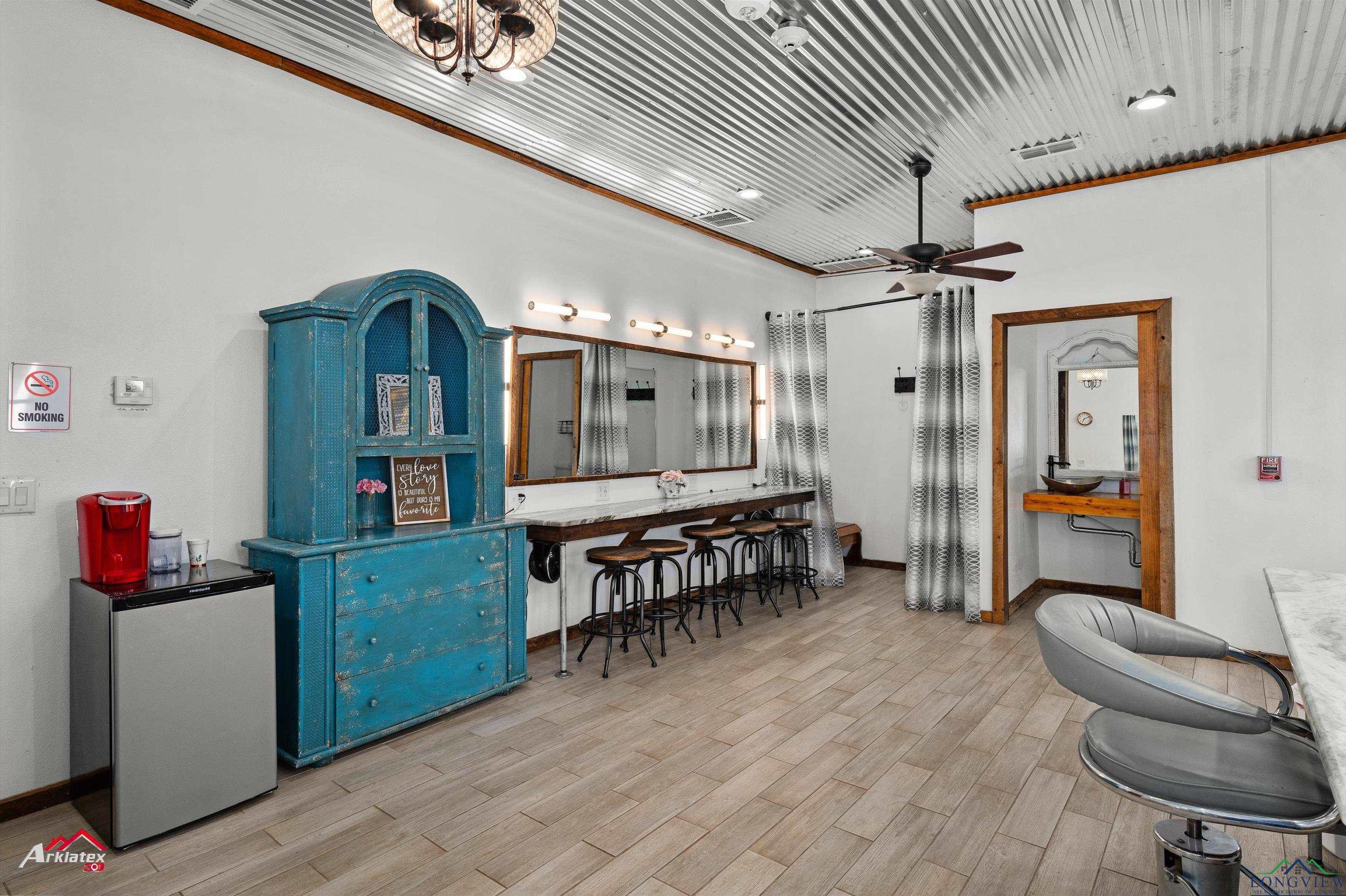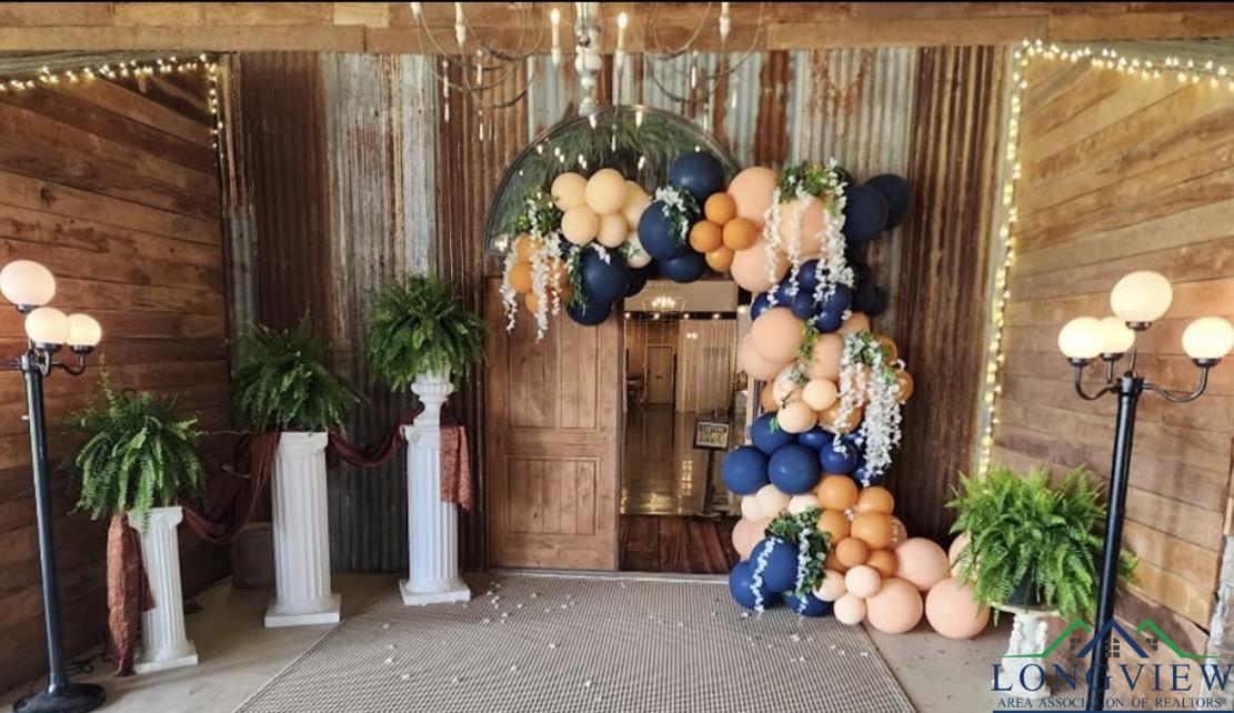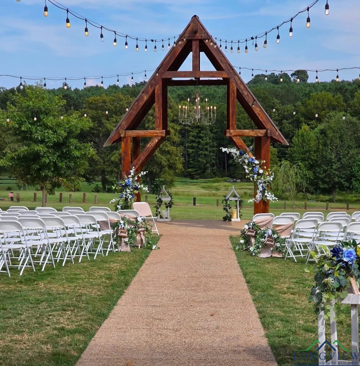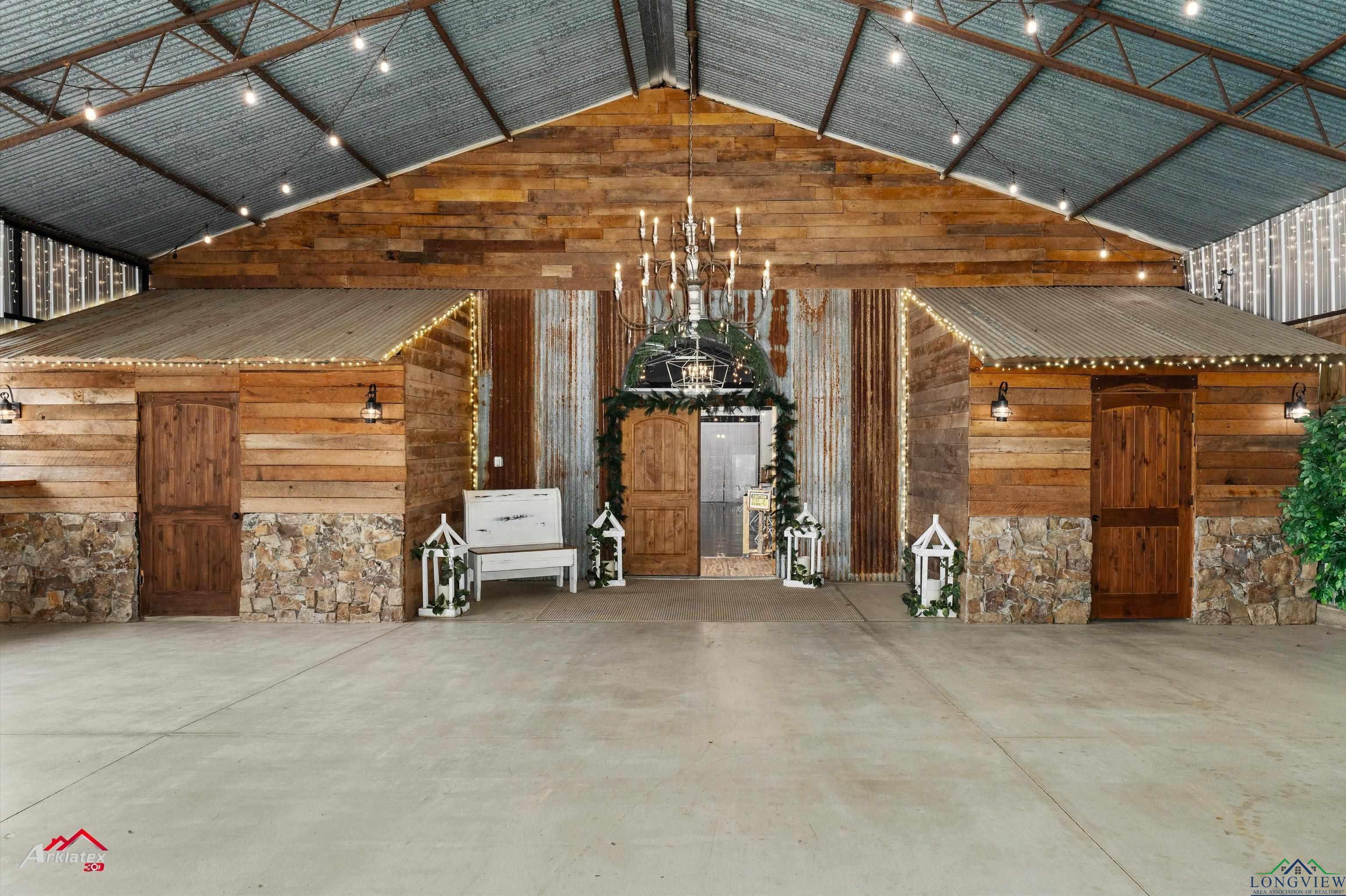 | Discover an exceptional opportunity to own a flourishing event center situated on 8.65 picturesque acres in Longview, Tx. This property features a stunning 4,474 sq. ft. indoor event center with custom lighting, a commercial kitchen, a 110-inch projector screen with surround sound, and a monitored fire alarm system. Adjacent is a 3,600 sq. ft. covered entertaining area with seamless indoor-outdoor flow and ample space for guests. The outdoor area boasts a beautiful view of French Lake, a charming wedding arbor, elegant outdoor lighting, and ample parking to accommodate all your guests comfortably. There is also a sprinkler system installed in the yard of the venue to help keep the yard nice and green thought the hot summer. Additionally, there are Bridal and Groom Suites, men's and woman's bathroom's and 3 bedrooms for guests spanning 1,846 sq. ft., connected by elegant custom iron doors, ideal for wedding parties. Extra storage is available with an 800 sq. ft. shop and a 900 sq. ft. barn/shed. Included in the sale are all tables, chairs, tablecloths, and numerous event decorations, allowing you to host events immediately without additional investments. Currently an established and thriving venue, all existing reservations will be honored, ensuring a smooth transition and immediate income. The main residents is attached at the front of the venue and offers 2280 sq ft with 3 bedrooms, 2 baths and an office. There is a beautiful deck off of the office that overlooks the property and above ground pool. The main residence could easily be converted to be part of the venue for increased revenue. Situated in a serene and scenic setting, the venue offers a picturesque backdrop while maintaining convenient accessibility for guests and vendors. This property is perfect for entrepreneurs looking to step into a successful, established business or expand their portfolio, offering substantial potential for growth and profitability. Additionally, the property is ADA accessible, ensuring comfort and convenience for all guests. You don't want to miss this unique opportunity to own a vibrant and prosperous venue/event center that combines beauty with business success! For pricing details and to schedule a private viewing, please contact your trusted realtor. | |