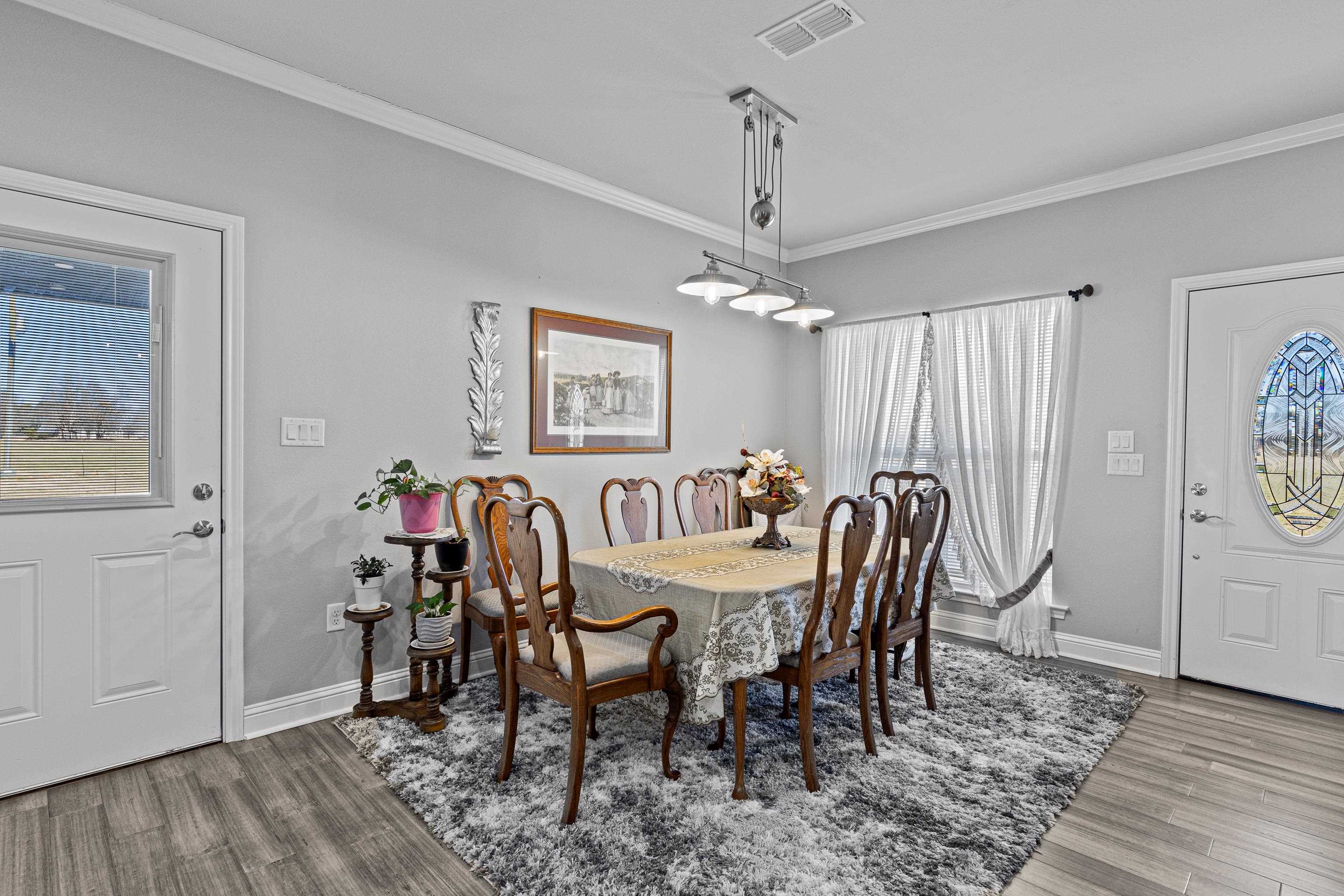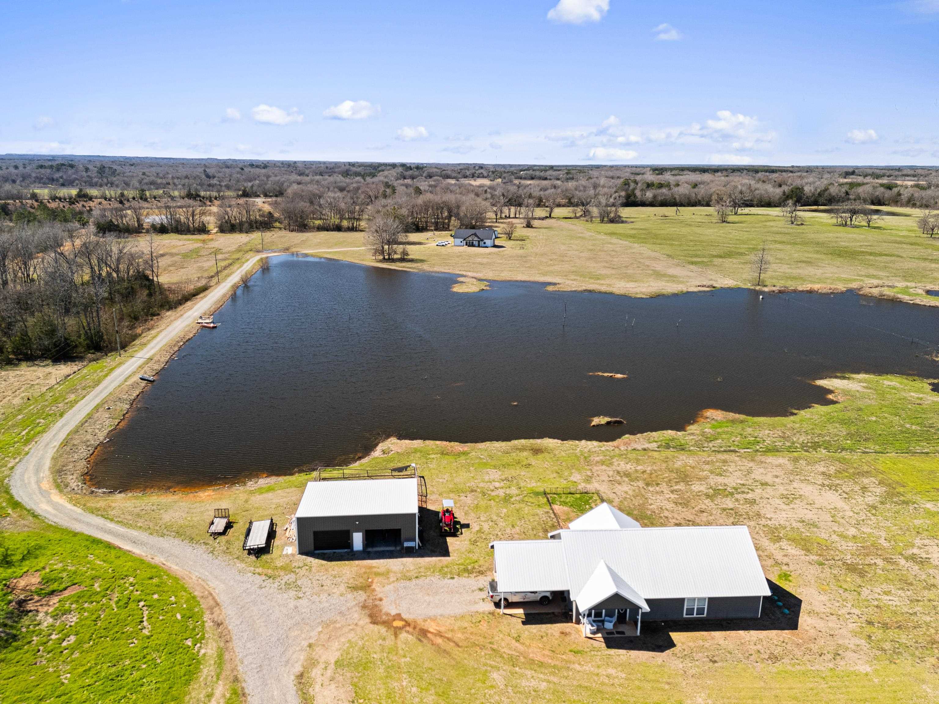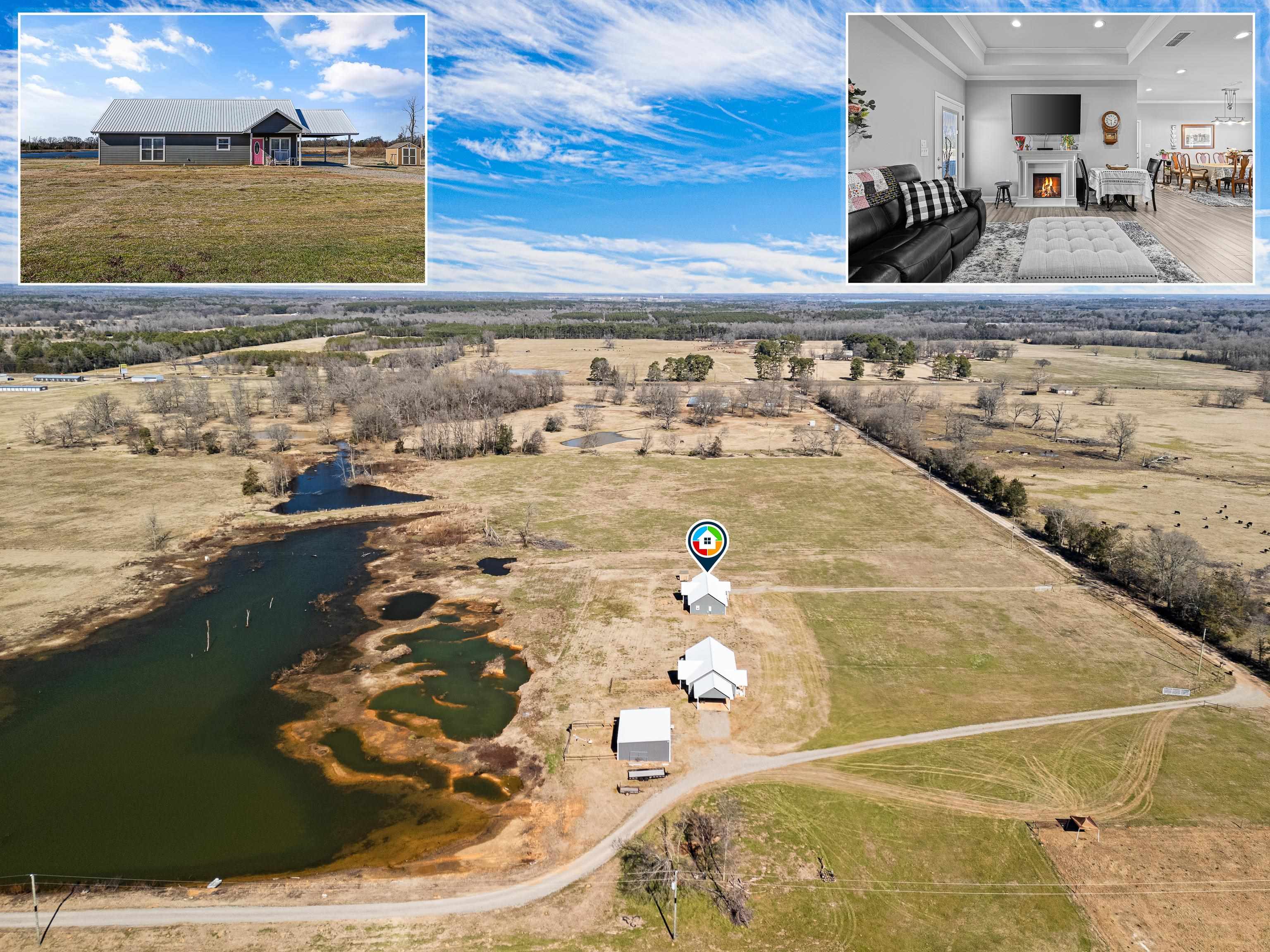 | FISHERMAN'S PARADISE WOW! SO MUCH TO OFFER! 16.25 beautiful acres, fishing pond for the fisherman, 2 Beautiful homes built in 2022. Open floor plans with pretty ceiling treatments. Kitchen features built in microwave, decorative backsplash, ornamental molding, Living room boasts vaulted ceiling, light hardwood wood-style flooring, ornamental molding, ceiling fan, and a fireplace. Master baths have a HUGE tiled shower, and a wealth of natural light. You will LOVE the huge insulated shop. Buy 2 homes together or 349 CR 3104 can be bought separately with 2 acres for $349,000 | |