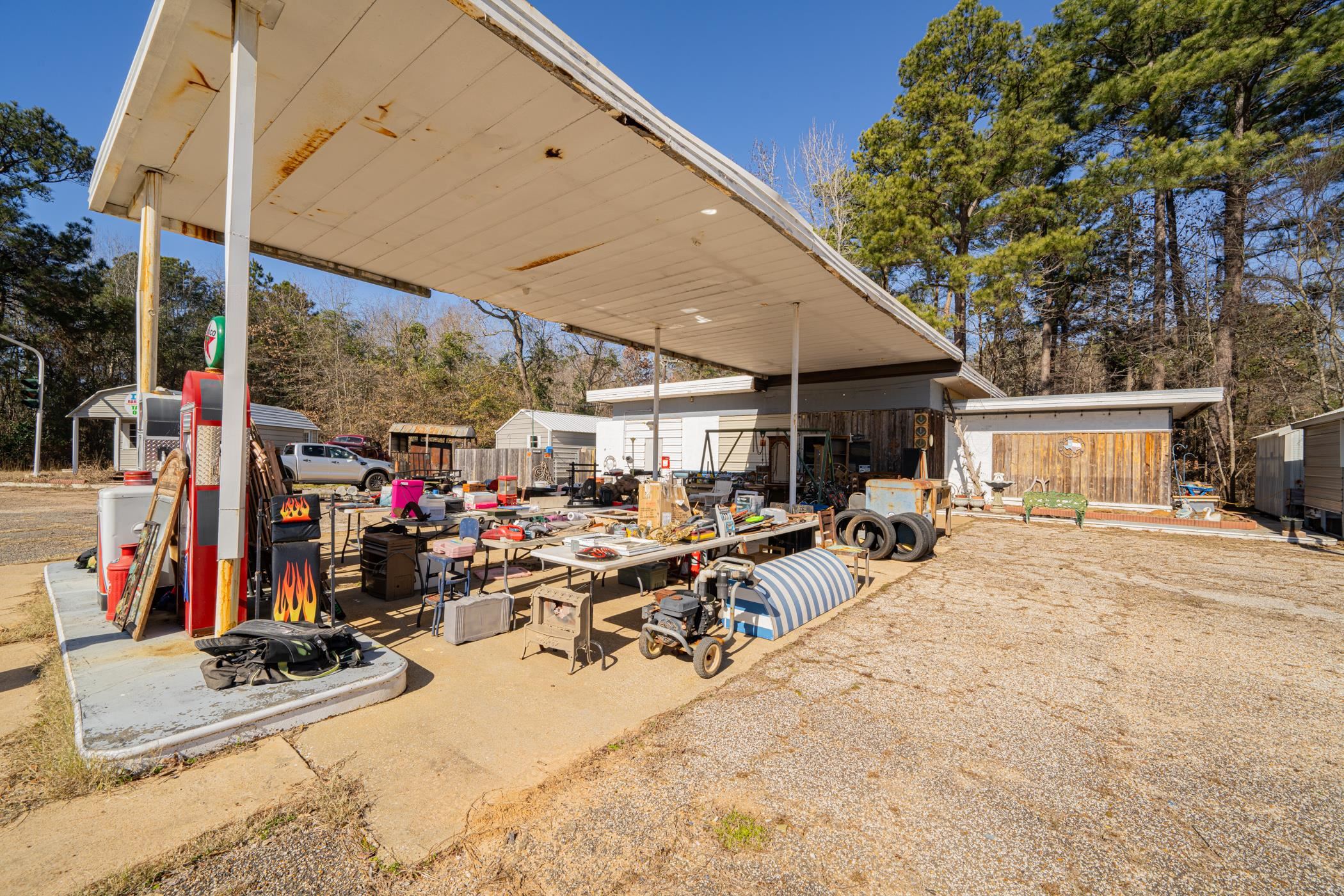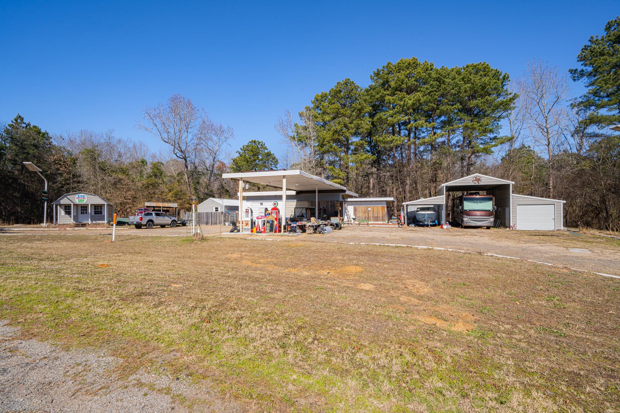 | Seize the incredible opportunity to own a versatile commercial property located right on the offramp of Interstate 20, boasting high visibility and significant traffic flow. Sitting right on the Joy Wright Mountain Exit 579, this property features a main building of 1,038 sq. ft., which includes a spacious store area, laundry, kitchen, and bathroom, along with separate men's and women's bathrooms for customer convenience. The main building has a new roof that was installed in 2022, ensuring a solid investment. Additionally, there’s a 435 sq. ft. finished out building that has been transformed into a fully equipped takeout barbecue business, with all restaurant equipment & signage included in the sale. Perfect spot for truckers stopping at Red Devil truck wash down the road. For on-site living, the property offers a cozy 448 sq. ft. residential quarters, featuring one bedroom, one bathroom, a living area, and a kitchen. Ample storage is available with over 750 sq. ft. dedicated to storage needs, along with plenty of covered parking options, including an RV and boat cover. The main building on the property was being set up for an antique store. The work & years of finding unique pieces has been done for you as all antiques currently on-site will be included in the sale. Situated on nearly 2 acres, the property offers ample space for expansion or additional business opportunities. With outstanding visual exposure from the interstate, this is an excellent choice for attracting customers. Don’t miss out on this rare find—contact us today to schedule a viewing and explore the possibilities of establishing a thriving business while enjoying the comfort of on-site living! | |