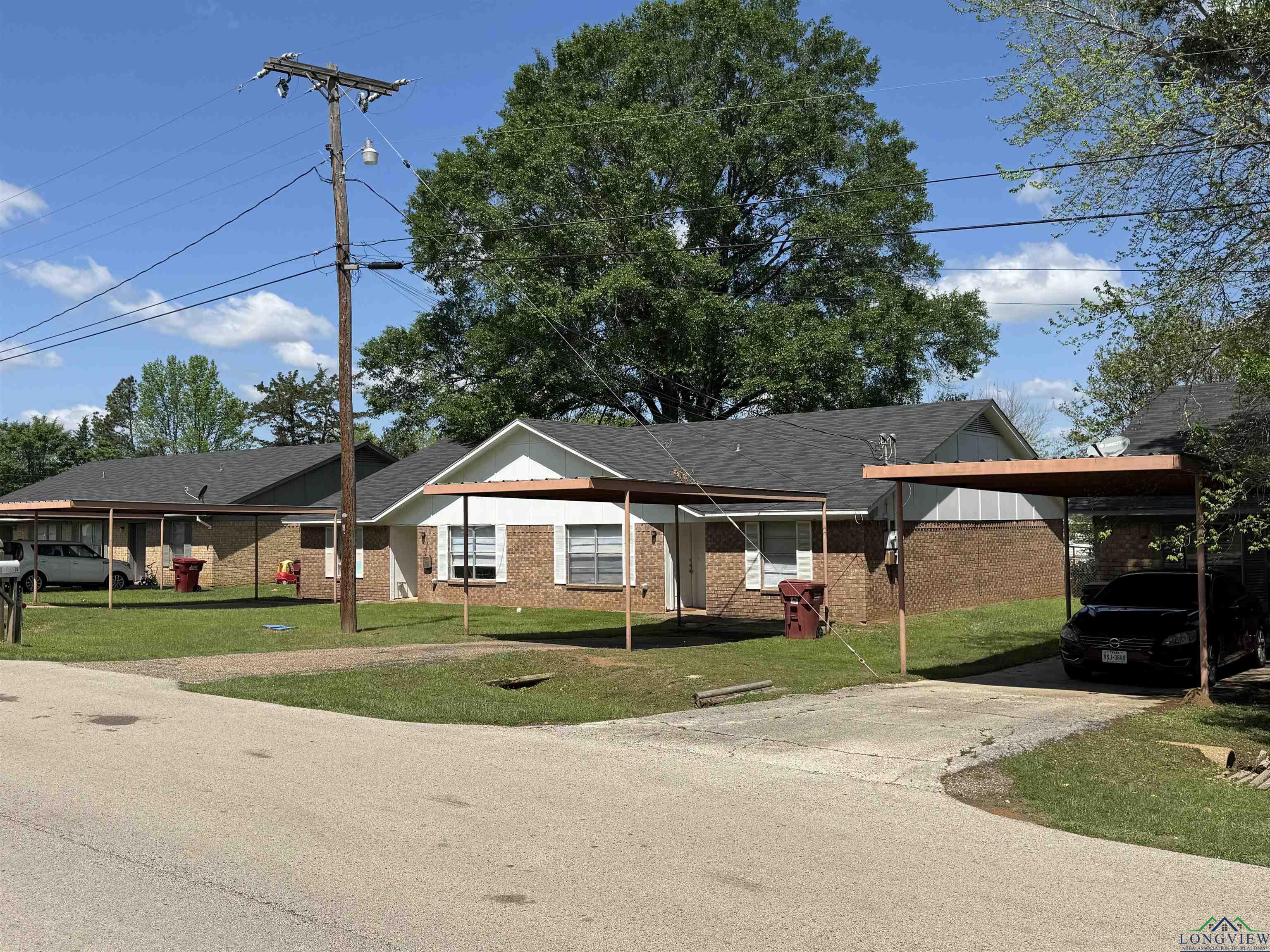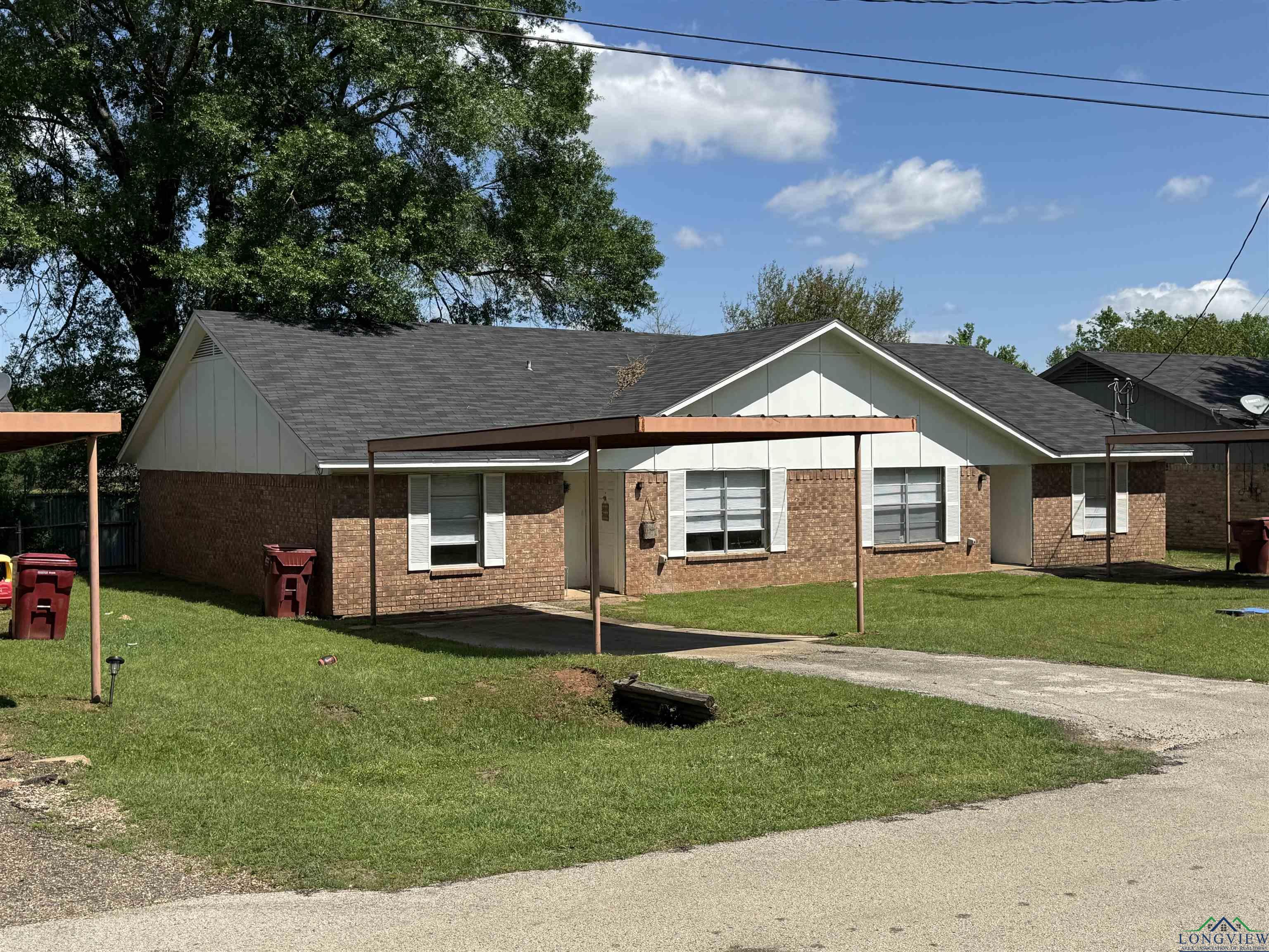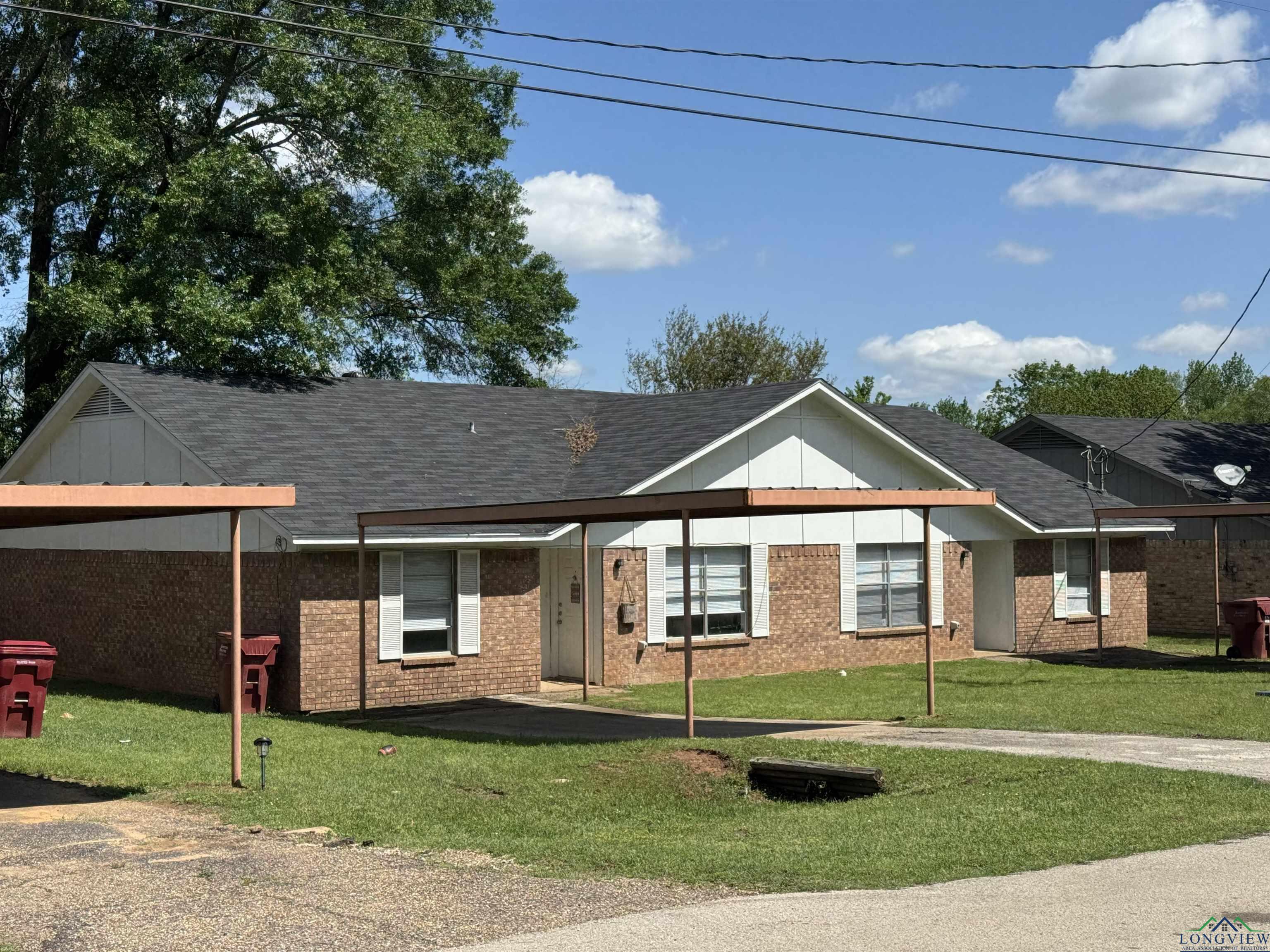 | Multi family home opportunity awaits at Young Rd in Hallsville Texas! 6 door income producing property, 3 duplexes located at 103, 105, and 107 Young Rd. Central location right in town off the main roads, close proximity to schools, stores and restaurants. Each unit has 1,798 sq ft of living space, 2 bedrooms and 1.5 bathrooms. All duplex’s are fully renovated in 2022, new roof completed as well. Plenty of room for income improvement, update to your liking. Call today to see all this property has to offer! | |