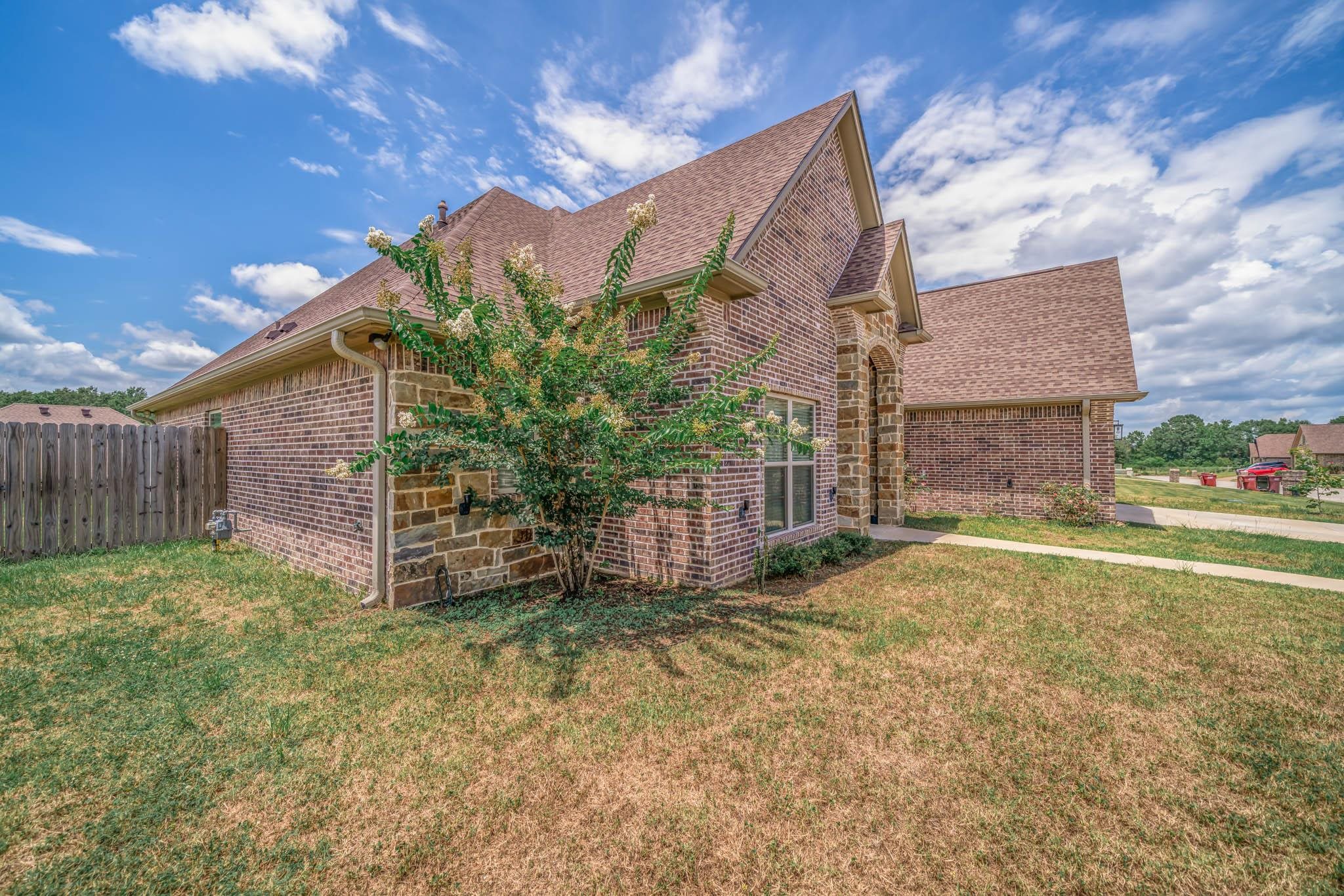 | A qualified Veteran could possibly be eligable to purchase this home through a VA Assumable Loan program. Hallsville, TX! Award winning Hallsville ISD! Germantown Community. This 4 bedroom and 3 bath 2370 sf home is ready for a new family. Built in 2022, this home has plenty of room for a large family. Enjoy the high ceilings throughout the home. The master bedroom is spacious with a walk-in shower, separate tub and large walk-in closet. The floor plan provides plenty of privacy with the master being split from two other bedrooms and bathroom. The fourth bedroom and full bathroom would be great for an office, guests or parents. The home comes with a gas log fireplace in the large living area. The kitchen has a gas cooktop, electric oven and microwave. Enjoy the large 2 car garage that leads to the laundry and mudroom. The backyard is privacy fenced and has a covered patio for relaxing and grilling outside. There are several varieties of fruit trees and berry bushes in the backyard. The home has Cat5 Network Cable Wiring throughout and Ethernet. The home also comes with an aquasana water conditioning and filter system. | |