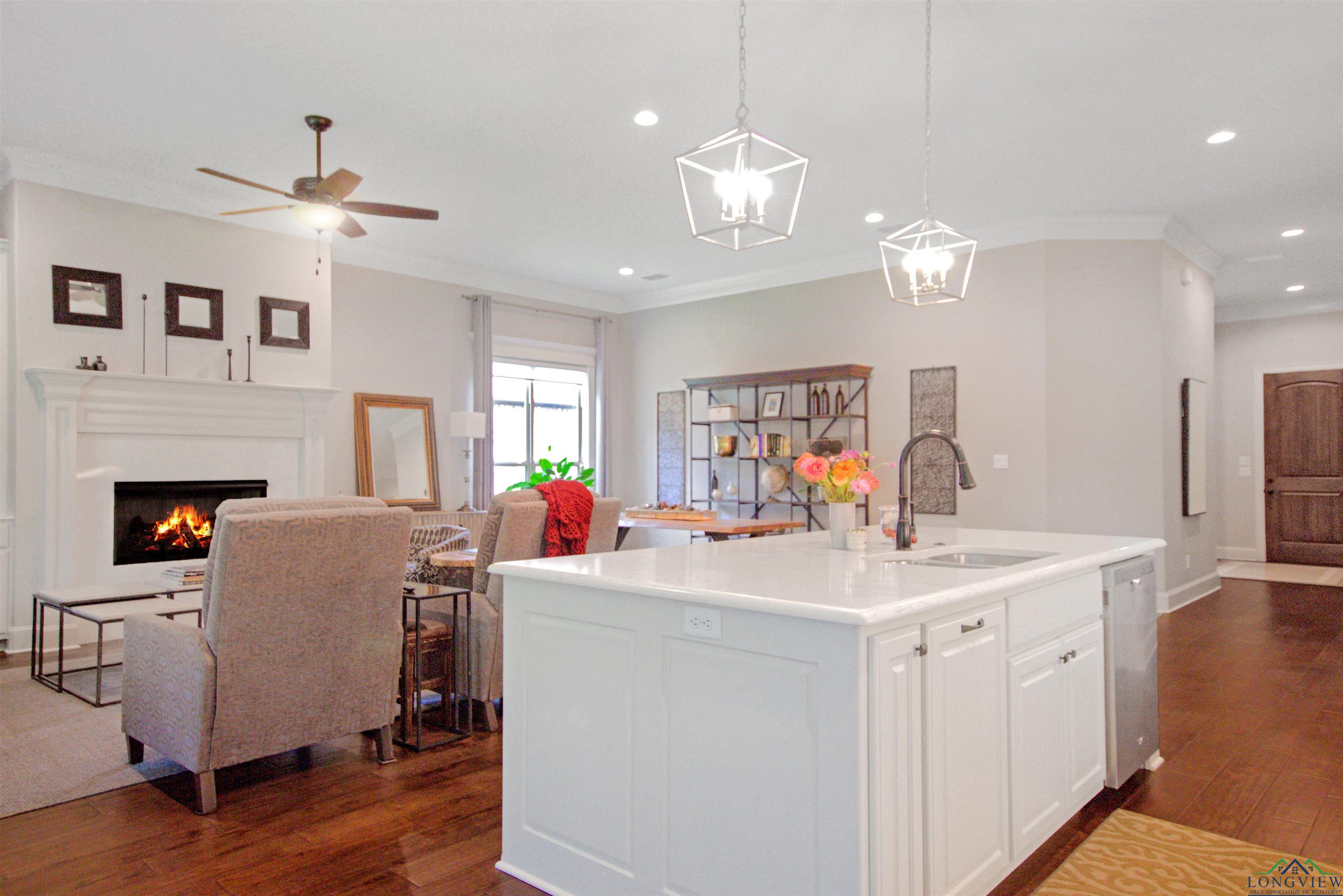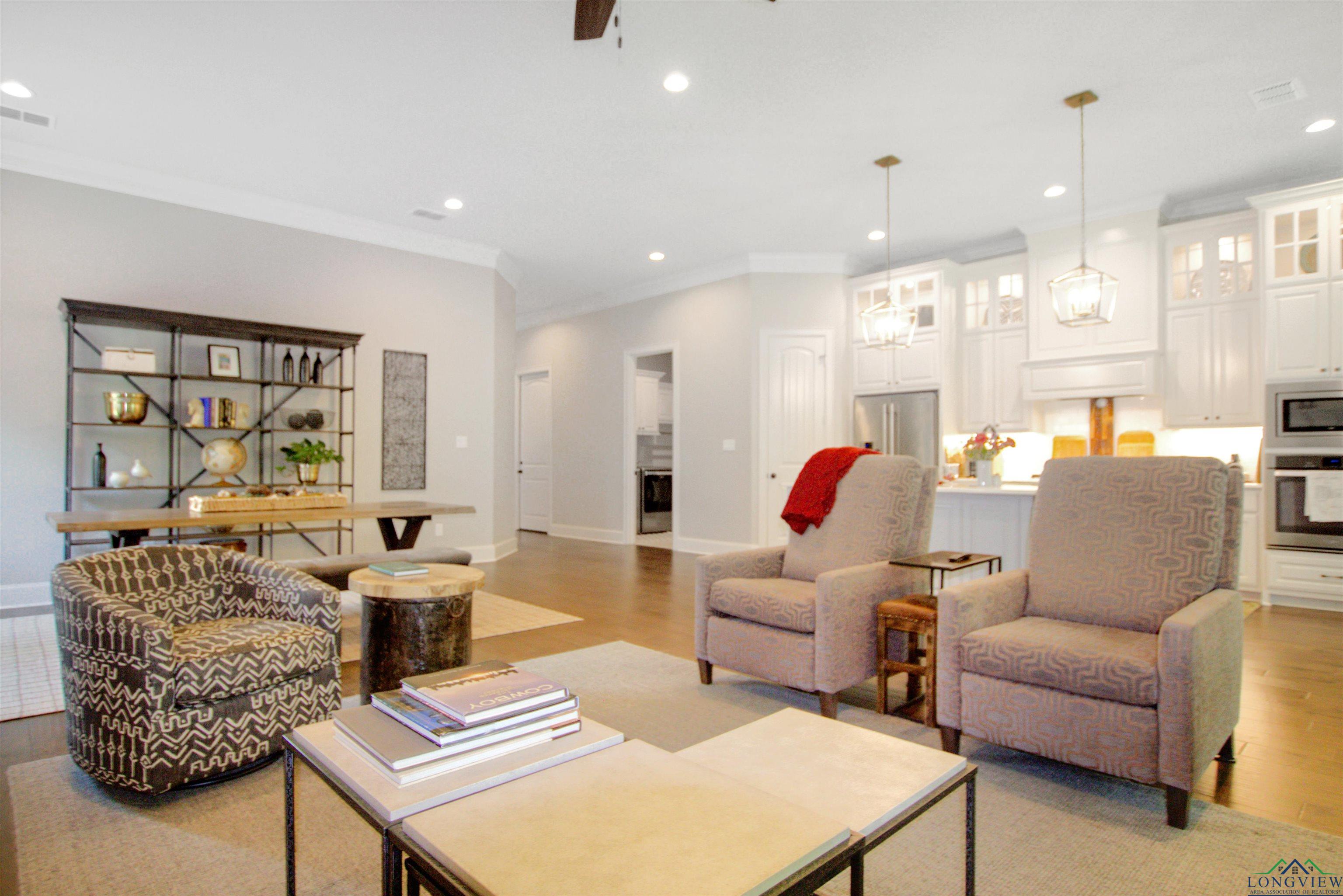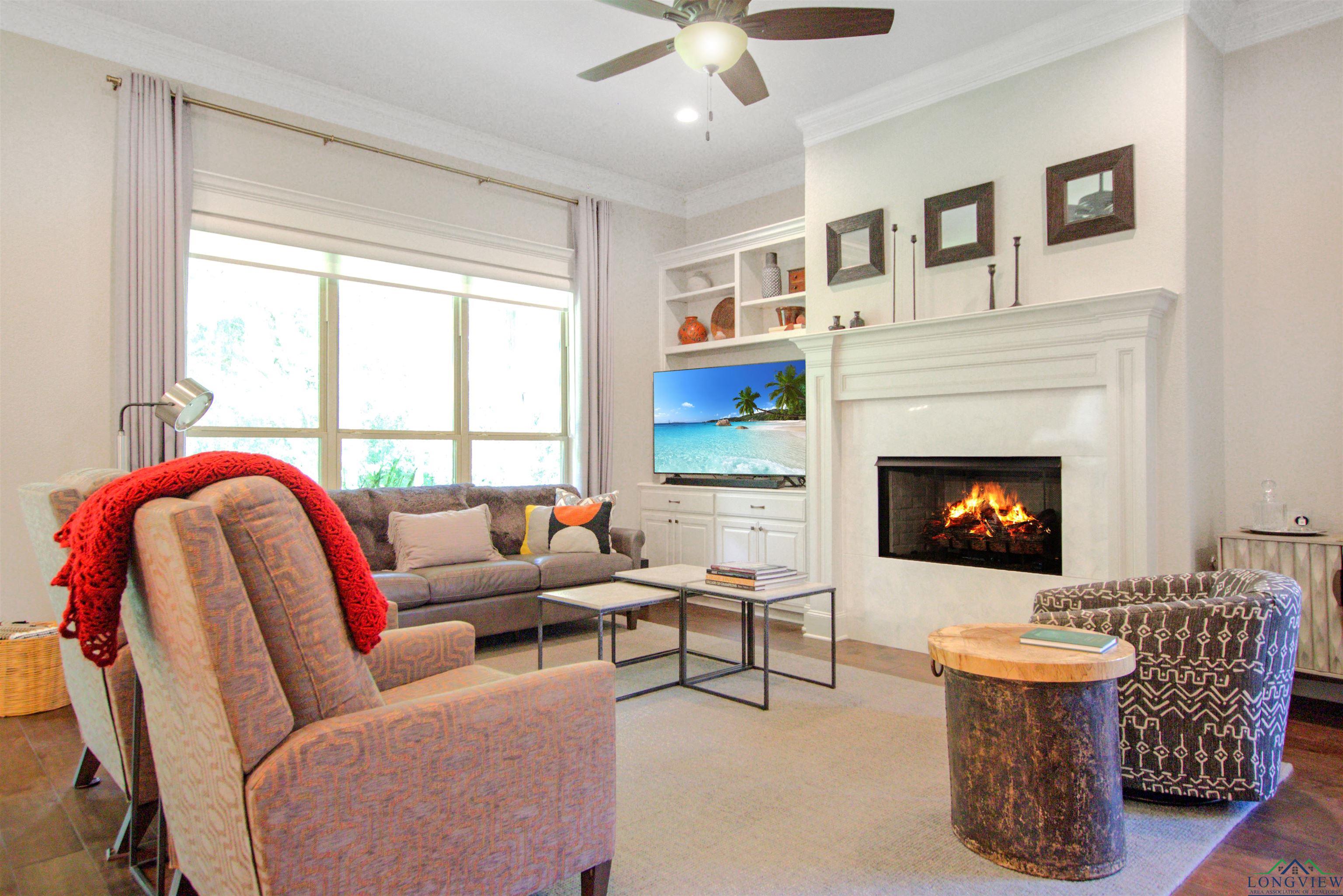 | Welcome to this stunning single-story 3-bedroom, 2-bathroom end-unit home in the gated Stonegate West Condos, ideally located right off Paluxy. Offering 2,270 sq ft, an office/flex room, and a 2-car garage, this thoughtfully designed residence blends comfort, elegance, and convenience. Step inside through the custom wooden front door to soaring 11-foot crown-molded ceilings and an open-concept living, kitchen, and dining area—perfect for entertaining. The kitchen boasts quartz countertops, unique lighting, and ample prep space, while the living room is anchored by a remote-start gas fireplace and filled with light from three windowed sides. The split primary suite features a spa-like bath with double vanity, a walk-in closet with built-ins that connects directly to the laundry room, and a peaceful layout. All bedrooms and closets are generously sized with built-ins for easy organization. This condo is nestled in the heart of one of East Texas’ most affluent neighborhoods and surrounded by majestic oak and pine trees, offering both beauty and tranquility. Energy-efficient features include foam insulation, LED lighting throughout, a tankless water heater, and fiber internet—making this home as low-maintenance as it is comfortable. The spacious, wooded backyard adds a serene outdoor retreat. As an end unit with only one shared wall, large entrances, and abundant windows, it offers rare privacy. COA dues cover water, sewer, irrigation, landscaping, trash, and exterior insurance for true worry-free living. Minutes from all that Tyler offers, yet tucked away in a peaceful, secluded setting. | |