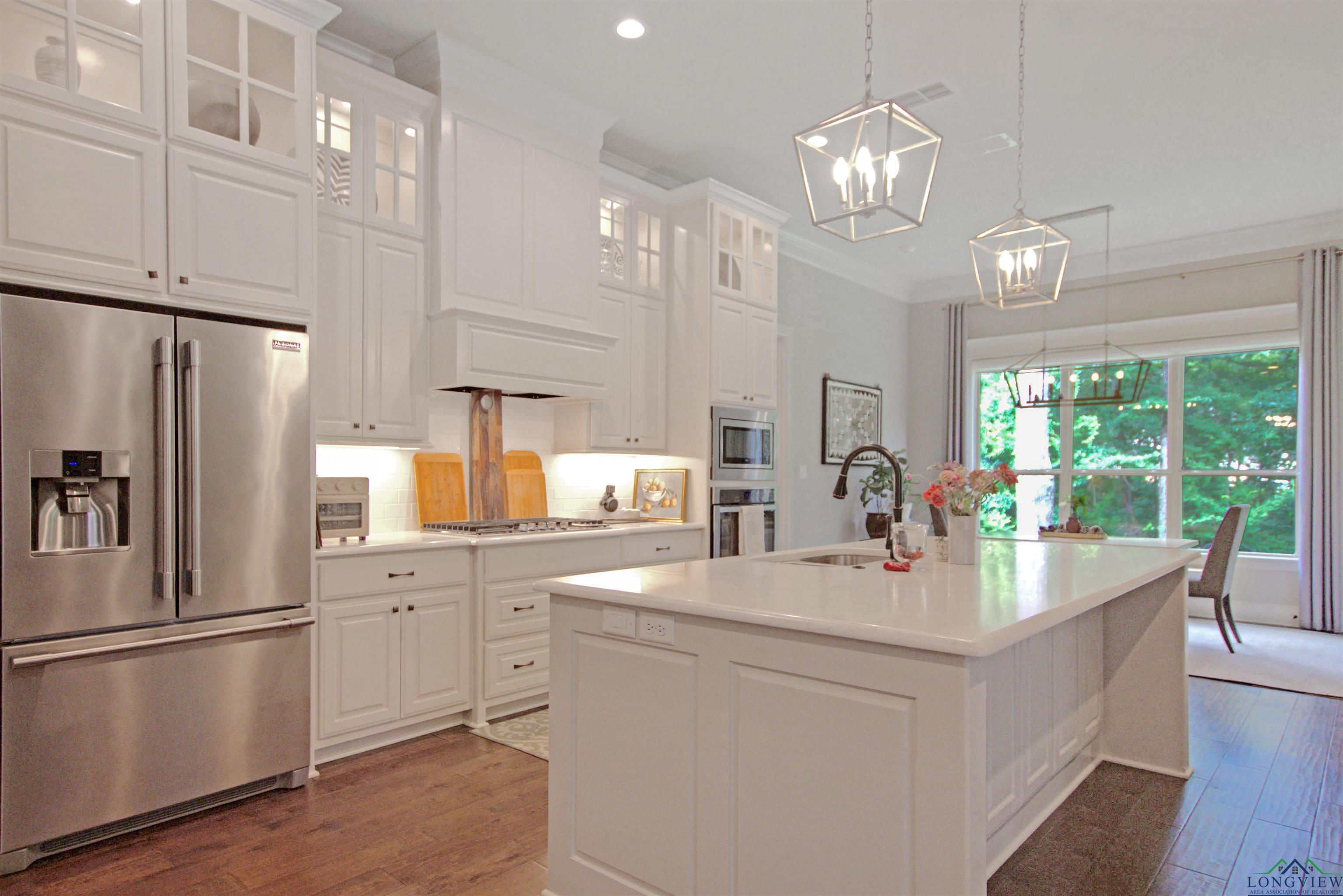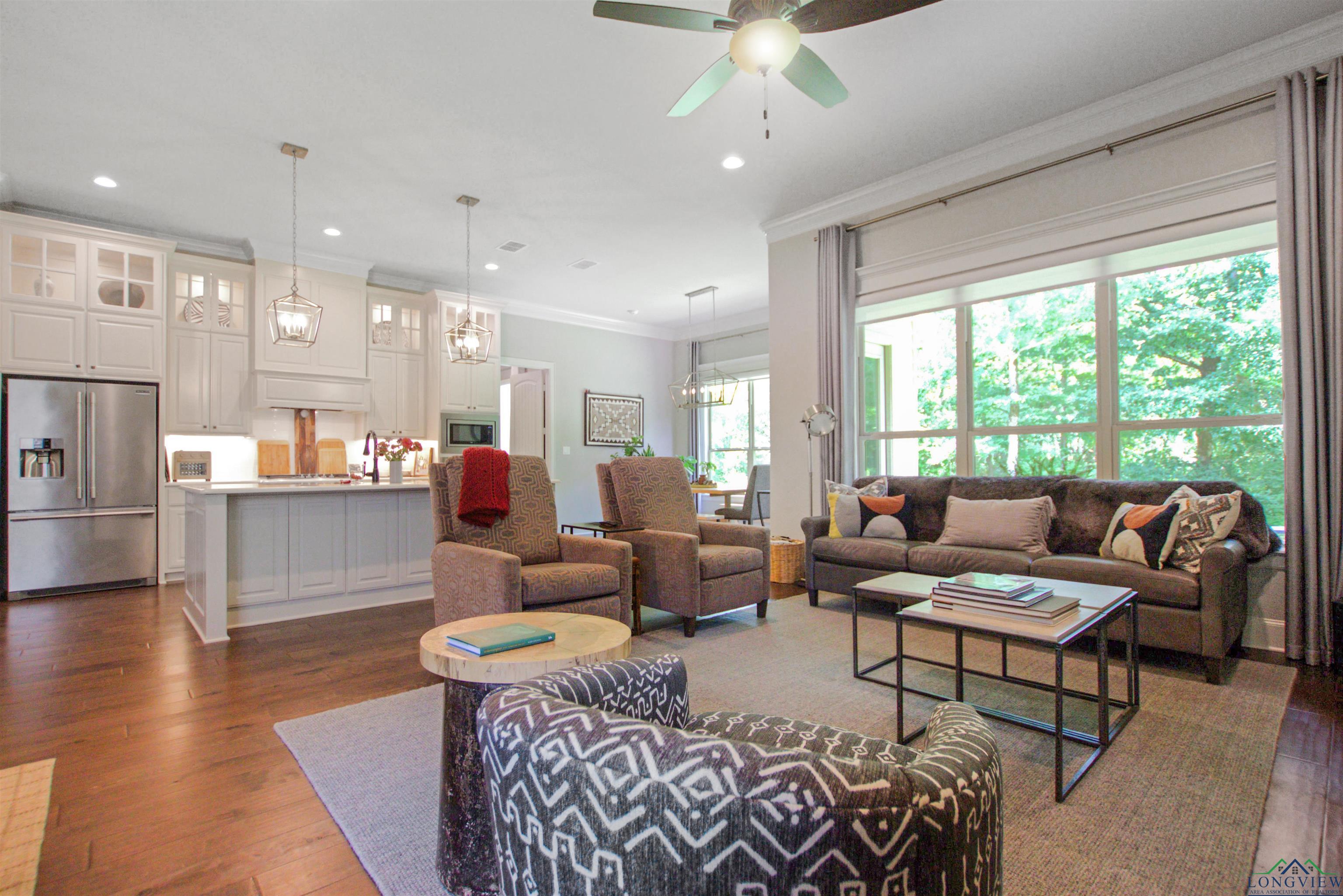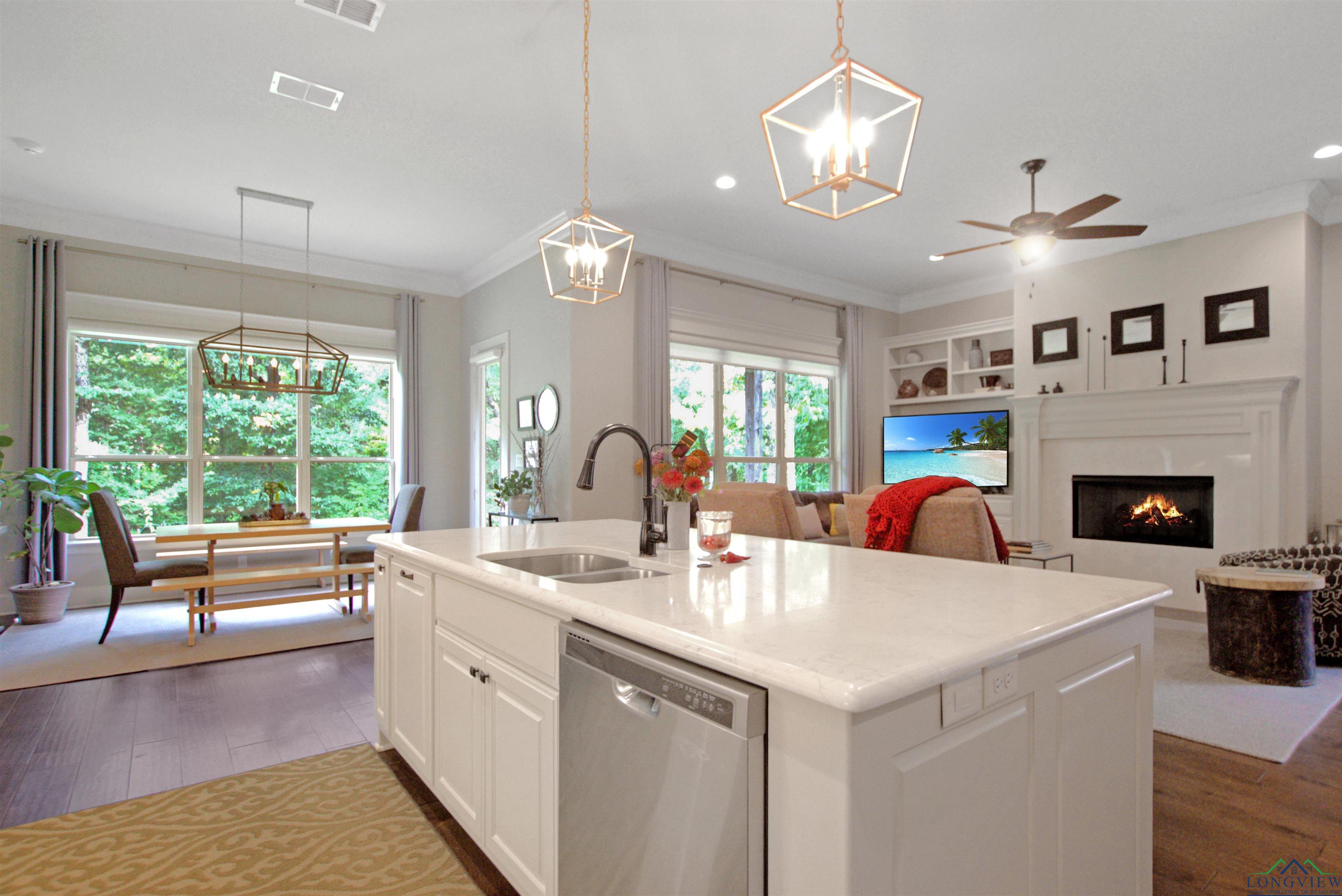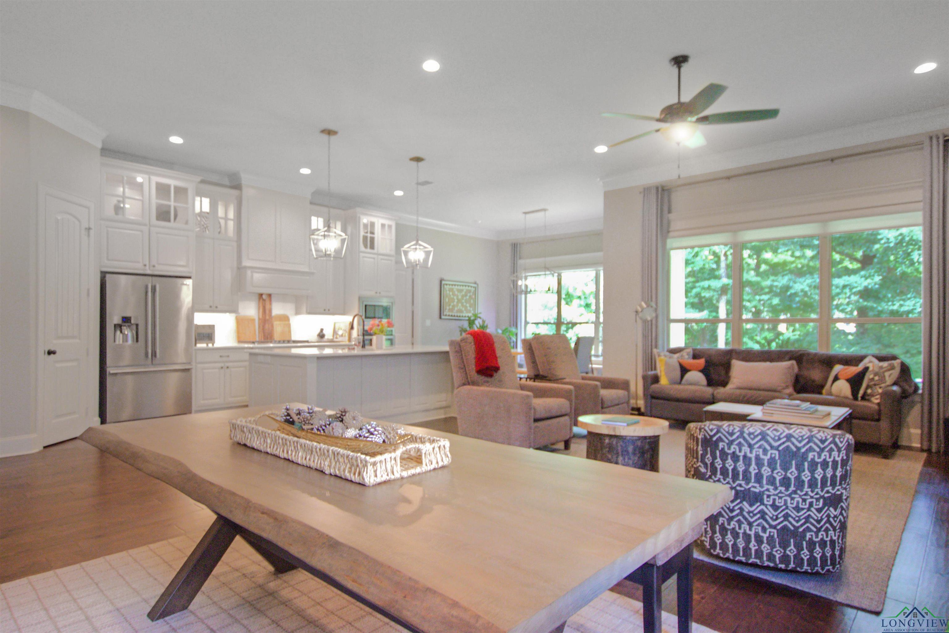 | Welcome to this stunning single-story 3-bedroom, 2-bathroom end-unit home in the gated Stonegate West Condos, ideally located right off Paluxy. Offering 2,270 sq ft, an office/flex room, and a 2-car garage, this thoughtfully designed residence blends comfort, elegance, and convenience. Step inside through the custom wooden front door to soaring 11-foot crown-molded ceilings and an open-concept living, kitchen, and dining area—perfect for entertaining. The kitchen boasts quartz countertops, unique lighting, and ample prep space, while the living room is anchored by a remote-start gas fireplace and filled with light from three windowed sides. The split primary suite features a spa-like bath with double vanity, a walk-in closet with built-ins that connects directly to the laundry room, and a peaceful layout. All bedrooms and closets are generously sized with built-ins for easy organization. This condo is nestled in the heart of one of East Texas’ most affluent neighborhoods and surrounded by majestic oak and pine trees, offering both beauty and tranquility. Energy-efficient features include foam insulation, LED lighting throughout, a tankless water heater, and fiber internet—making this home as low-maintenance as it is comfortable. The spacious, wooded backyard adds a serene outdoor retreat. As an end unit with only one shared wall, large entrances, and abundant windows, it offers rare privacy. COA dues cover water, sewer, irrigation, landscaping, trash, and exterior insurance for true worry-free living. Minutes from all that Tyler offers, yet tucked away in a peaceful, secluded setting. | |