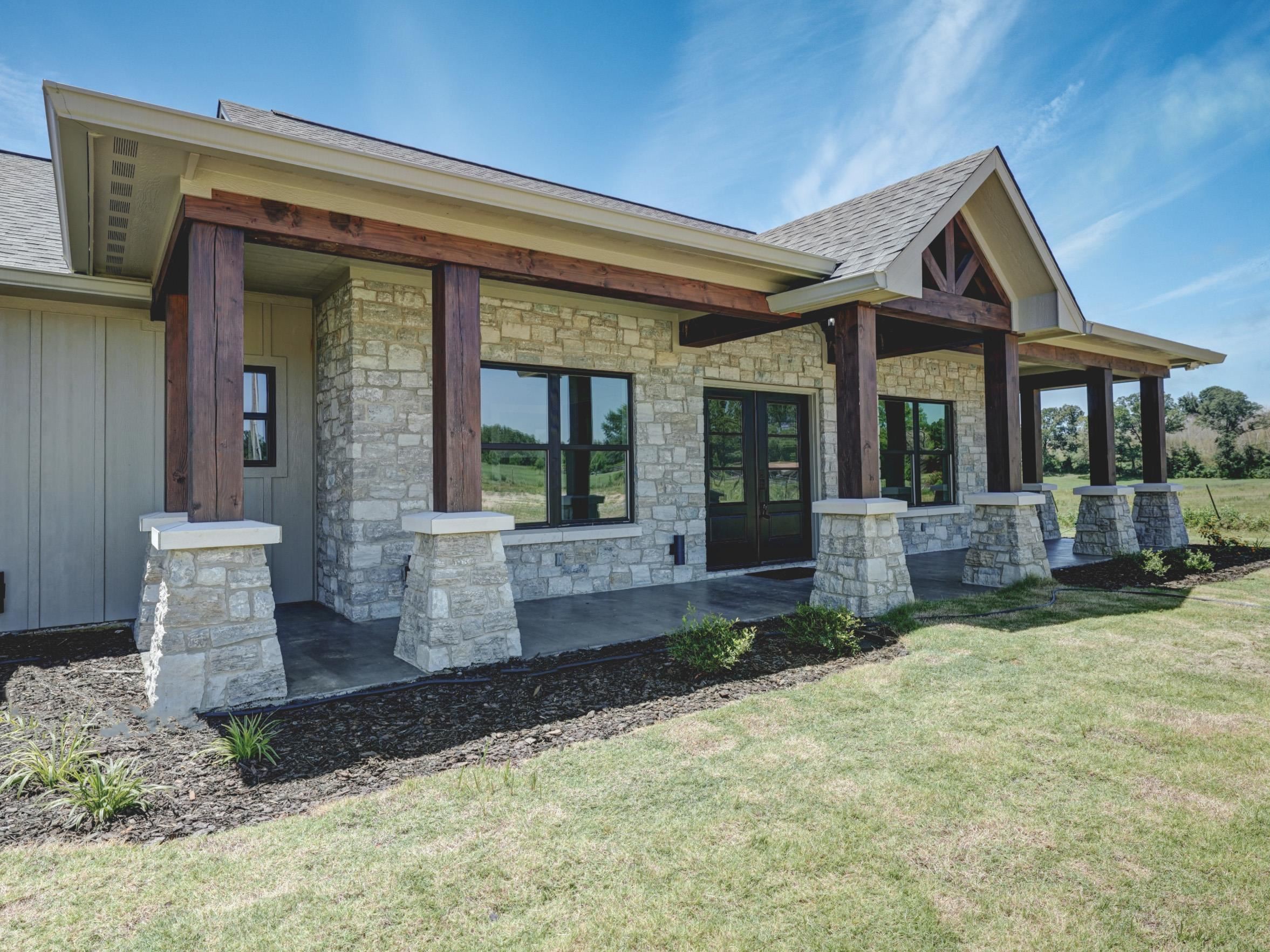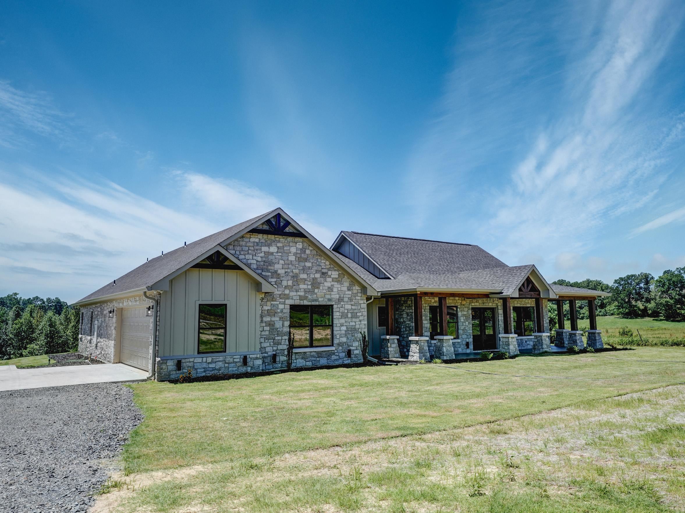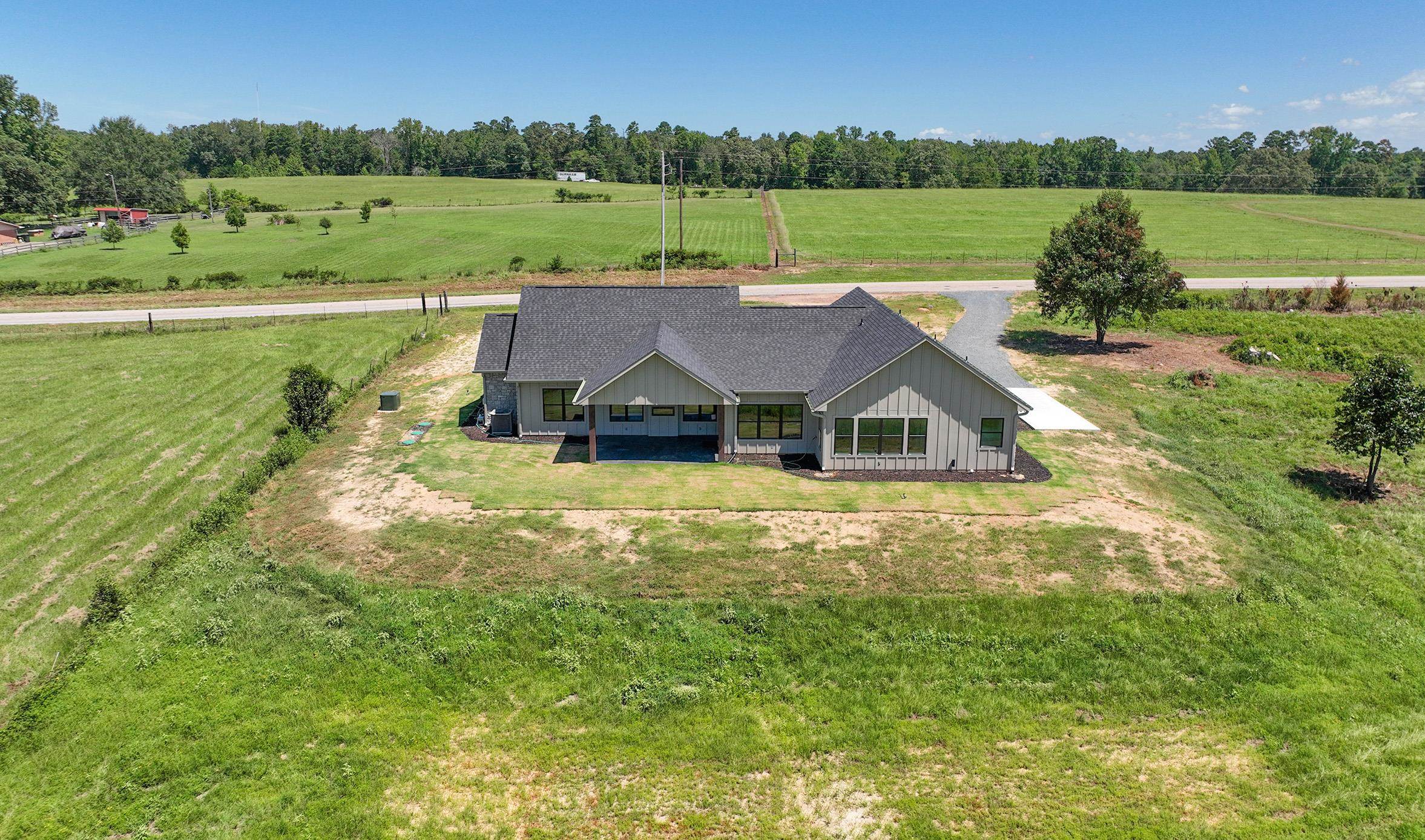 | Stunning New Custom Home with Panoramic Views Just Outside City Limits. Nestled on .5 acres this thoughtfully designed 4-BR, 2.5 BA Stone/Frame home offers over 2,400 square feet of refined living space. Enjoy breathtaking, panoramic views and an ideal split floor plan that ensures both privacy and comfort. The open-concept living area features soaring ceilings, earth-tone finishes, and a striking floor-to-ceiling stone fireplace with gas logs, creating a warm and inviting atmosphere.The gourmet kitchen is a chef's dream, showcasing custom cabinetry, a large center island, gas range, granite countertops, and an oversized walk-in pantry with built-in shelving. The primary suite includes an electric fireplace, a spa-like en suite bath with a tiled walk-in shower, soaking tub, FP, dual vanities, and a large walk-in closet. Two secondary bedrooms are connected by a Jack-and-Jill bathroom, making it ideal for families or guests. Additional features include two tankless water heaters for continuous hot water, ambient can-style lighting throughout, and an abundance of natural light from large windows. Outside, you'll find a beautifully landscaped yard, an expansive front porch with wood and stone columns, and a covered back patio featuring another built-in electric fireplace with one of the most beautiful views East Texas has to offer! Enjoy the peaceful crossbreeze and stunning sunsets in this truly serene setting. The home also includes an aerobic septic system and a 2 car garage. This home is a must see! | |