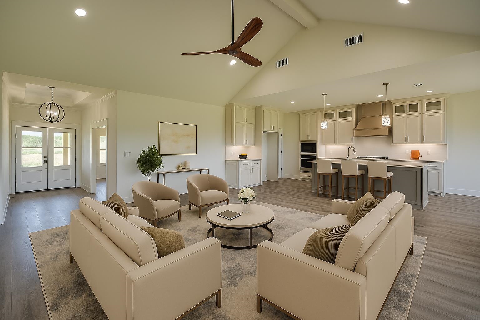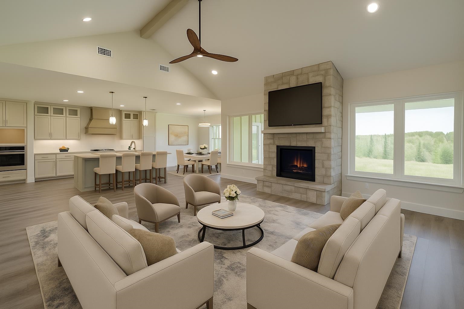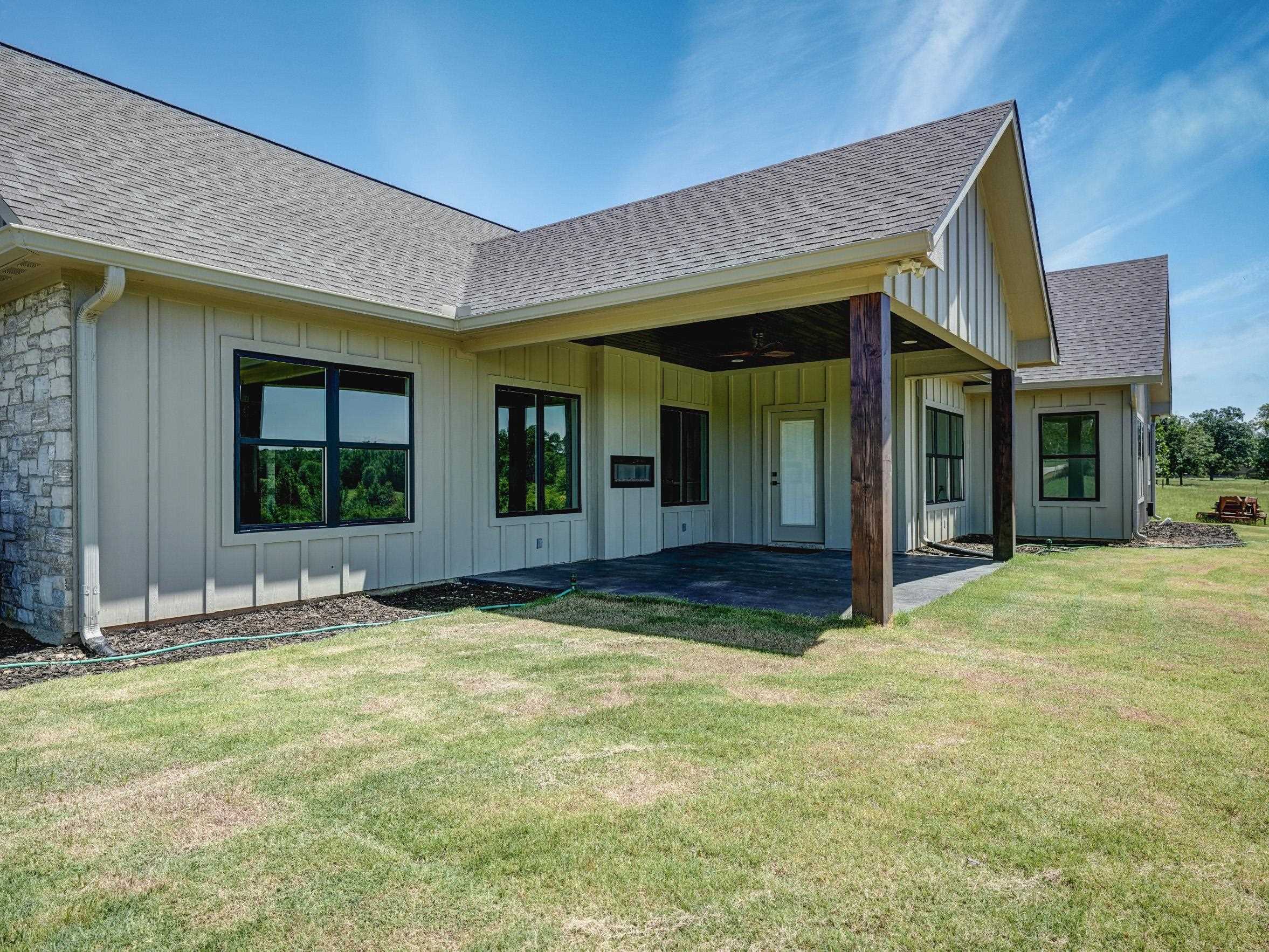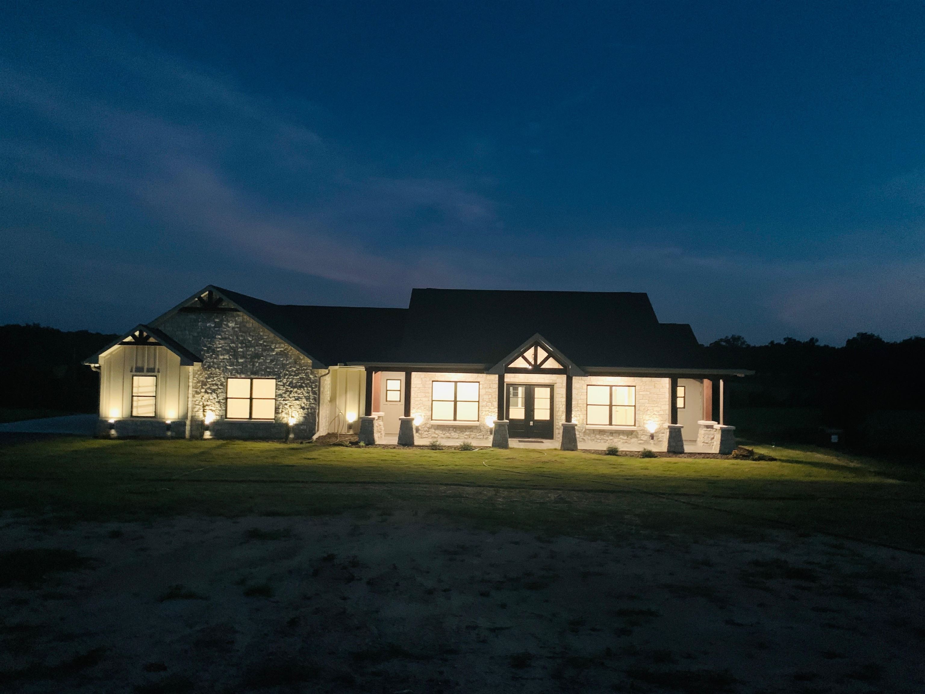 | Stunning New Custom Home with Panoramic Views Just Outside City Limits. Nestled on .5 acres this thoughtfully designed 4-BR, 2.5 BA Stone/Frame home offers over 2,400 square feet of refined living space. Enjoy breathtaking, panoramic views and an ideal split floor plan that ensures both privacy and comfort. The open-concept living area features soaring ceilings, earth-tone finishes, and a striking floor-to-ceiling stone fireplace with gas logs, creating a warm and inviting atmosphere.The gourmet kitchen is a chef's dream, showcasing custom cabinetry, a large center island, gas range, granite countertops, and an oversized walk-in pantry with built-in shelving. The primary suite includes an electric fireplace, a spa-like en suite bath with a tiled walk-in shower, soaking tub, FP, dual vanities, and a large walk-in closet. Two secondary bedrooms are connected by a Jack-and-Jill bathroom, making it ideal for families or guests. Additional features include two tankless water heaters for continuous hot water, ambient can-style lighting throughout, and an abundance of natural light from large windows. Outside, you'll find a beautifully landscaped yard, an expansive front porch with wood and stone columns, and a covered back patio featuring another built-in electric fireplace with one of the most beautiful views East Texas has to offer! Enjoy the peaceful crossbreeze and stunning sunsets in this truly serene setting. The home also includes an aerobic septic system and a 2 car garage. This home is a must see! | |