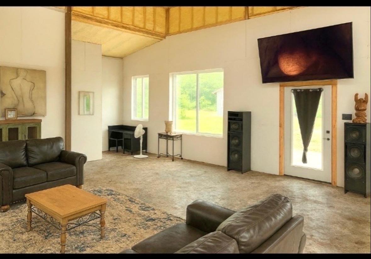 | 10 Acres with a beautiful barndominium! It still needs some finishes on the inside. It is spray foamed. This home is very secluded has a long diveway to the house. Has a island pond. 3/2 high ceilings concrete floors. Walk out of the master bedroom onto your personal patio. Wait till you see the views. Lots of wildlife beautiful views out every window in the house. Woodstove in the living room. Come see this home if you do not want close neighbors. Sellers are Motivated! | |