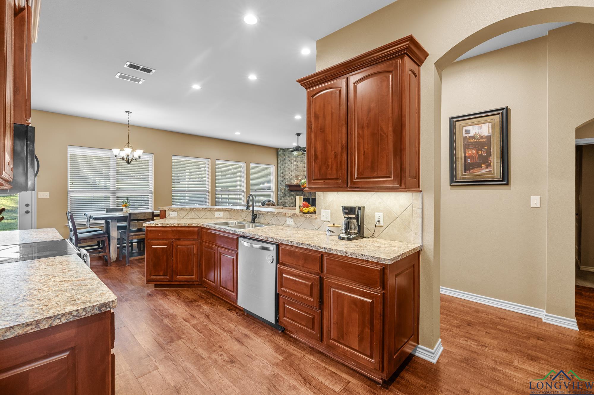 | Welcome to your new home in the highly sought-after Spring Hill ISD! This beautifully maintained 4-bedroom, 2-bath brick home offers the perfect blend of comfort, privacy, and functionality nestled on 1.88 peaceful acres at the end of a quiet cul-de-sac. Step inside to an inviting open layout filled with natural light, warm neutral tones, and stylish wood-look flooring throughout the main living areas. The spacious living room centers around a cozy brick fireplace, creating a welcoming space to gather with family or unwind after a long day. The kitchen offers abundant cabinetry, a breakfast bar for casual dining, and an easy flow into the dining and living areas, perfect for entertaining or everyday life. The split-bedroom design provides privacy and flexibility, featuring a generous primary suite complete with a relaxing ensuite bath and large walk-in closet, while three additional bedrooms offer comfort for guests, family, or a home office setup. Outside, the property shines with features designed for both lifestyle and convenience. A 15x30 RV port with full hookups, a 30x40 insulated shop perfect for hobbies or extra storage, and plenty of open yard space for gardening, outdoor gatherings, or simply enjoying the peace and quiet. Experience the best of country living with city convenience, located just minutes from top-rated schools, shopping, and dining in Longview, TX. This one truly has it all, space, comfort, and that special feeling of home. | |