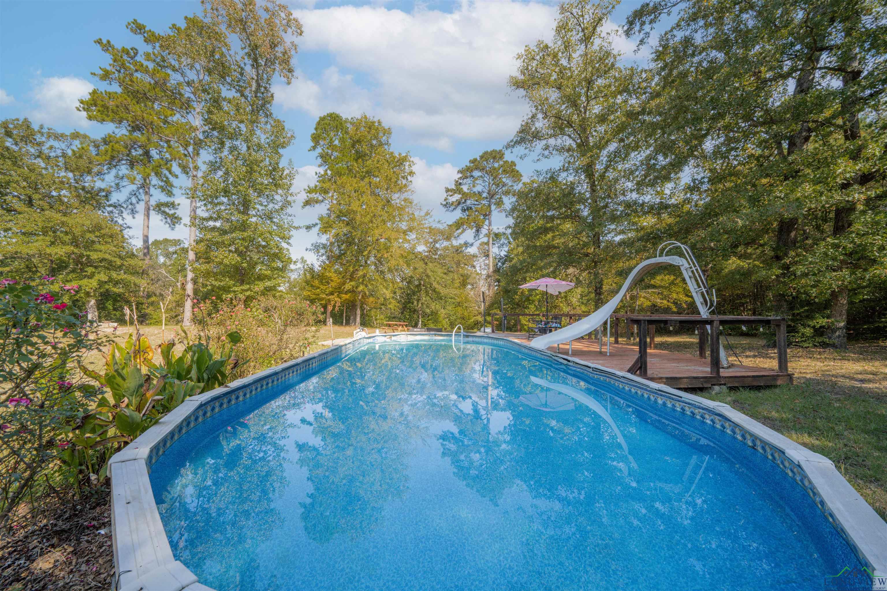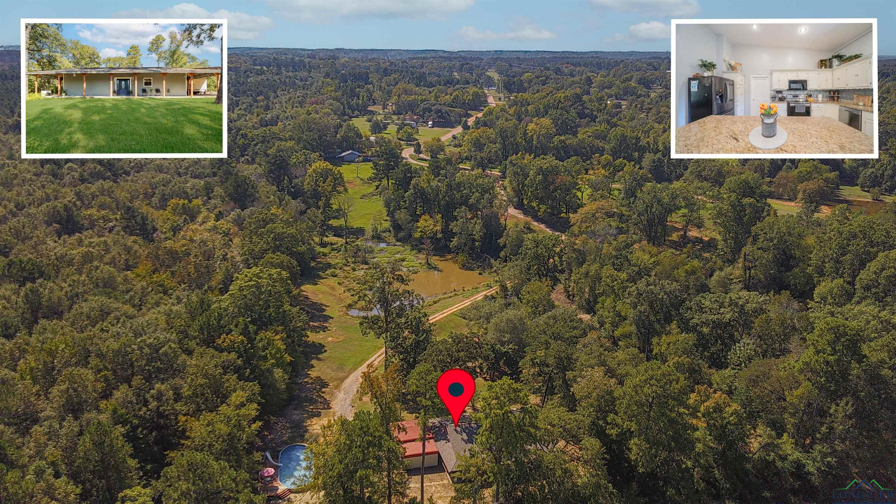 | Experience serene country living on the Sabine River! This stunning 3-bedroom, 3-bathroom home offers over 2,400 sq. ft. of living space and sits on just under 10 acres with expansive Sabine River frontage. With its exceptional outdoor amenities and tranquil riverside setting, this property provides the perfect retreat for those who love the outdoors. Enjoy the wraparound porch, pool, peaceful pond, and spacious yard — ideal for entertaining, relaxing, or simply soaking in the natural beauty around you. Two RV hookups make it easy for guests or extended family to join in on the fun. Inside, you’ll find a large open living area, two bedrooms and two baths on the main level, and a private upstairs bedroom and bath. Completely secluded yet conveniently located near Lake Cherokee and just minutes from town, this home combines country charm and modern comfort in one incredible property. | |