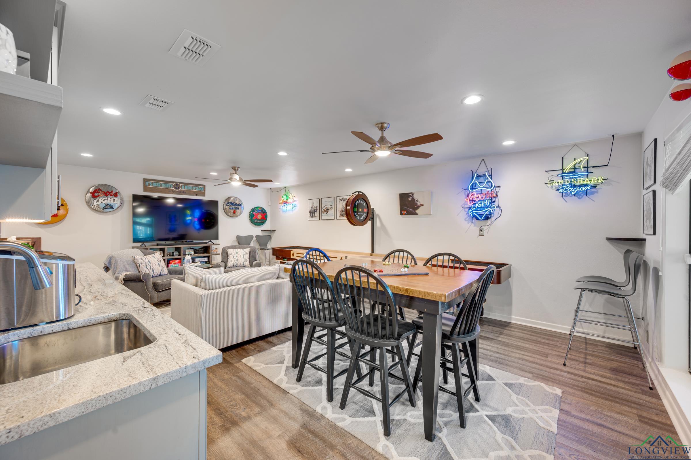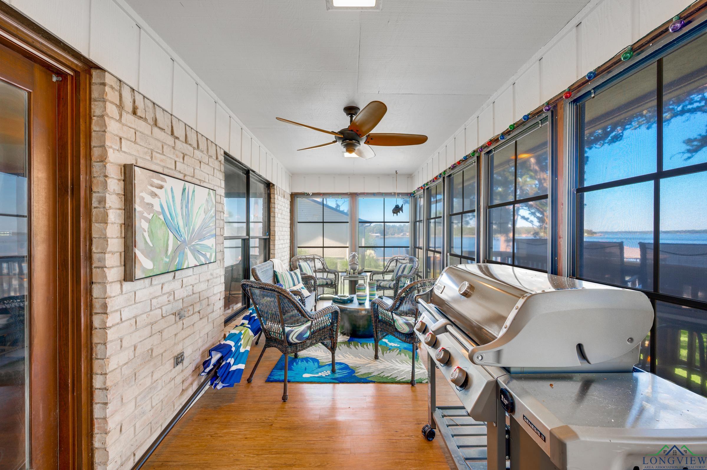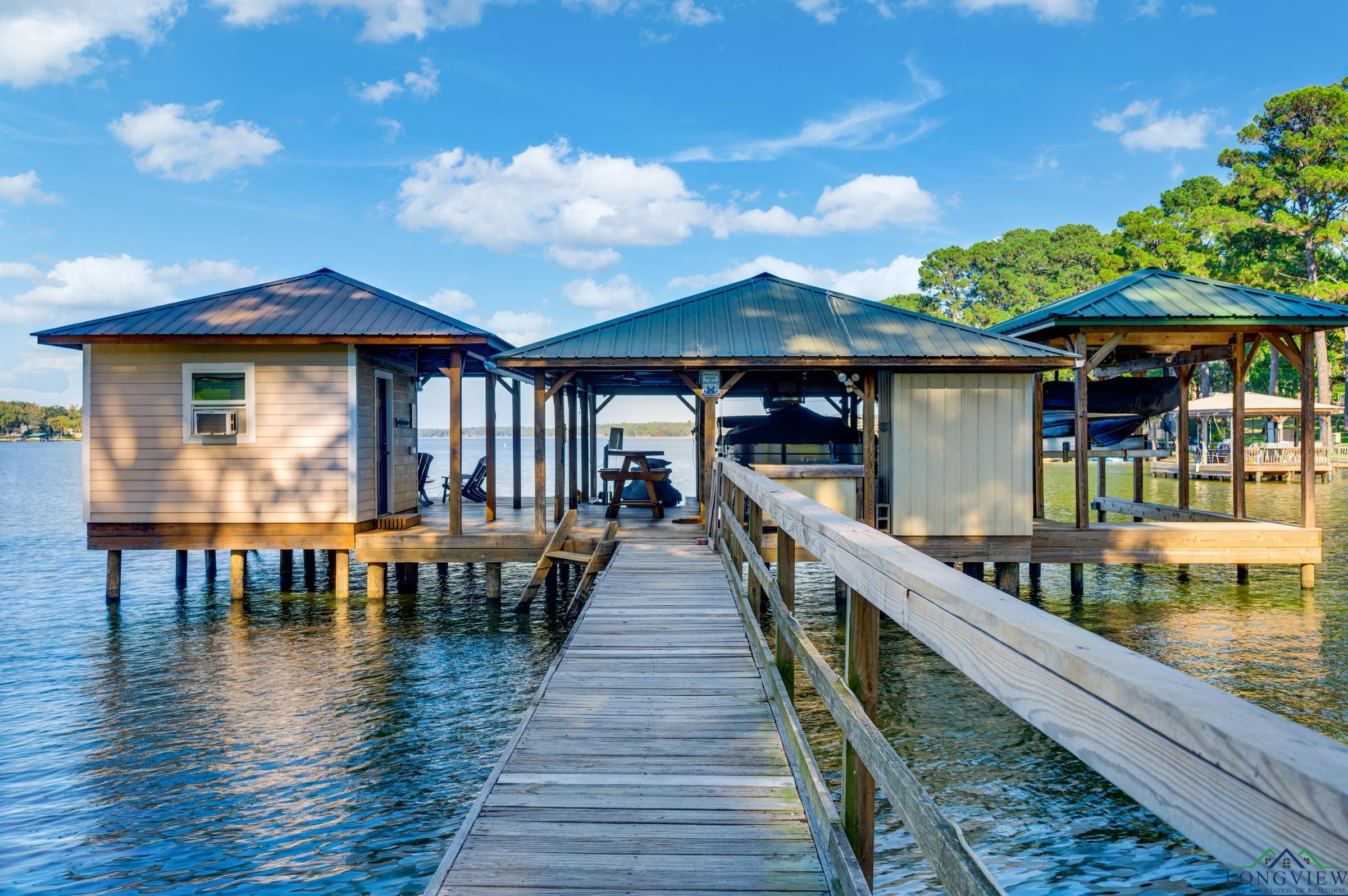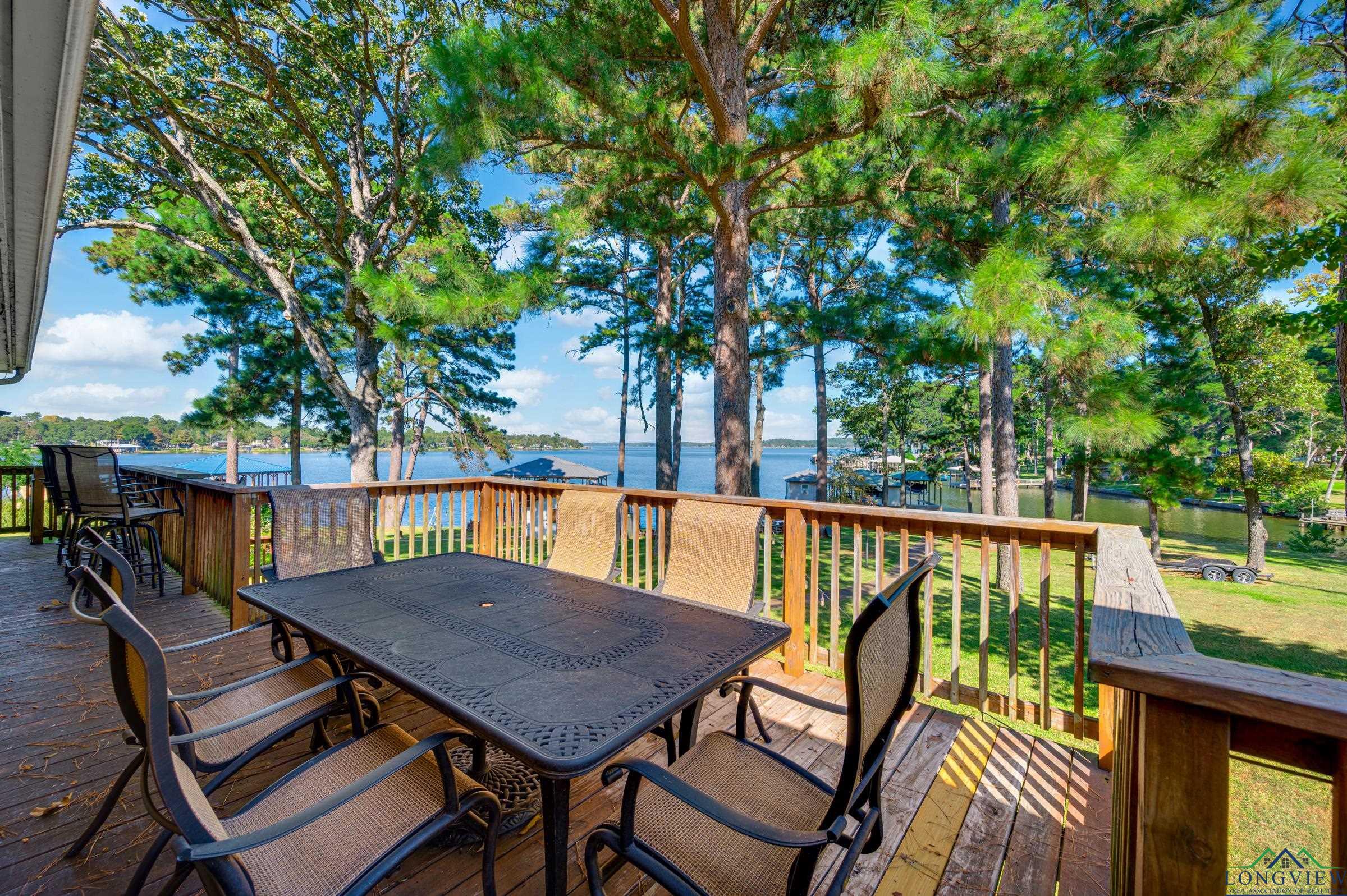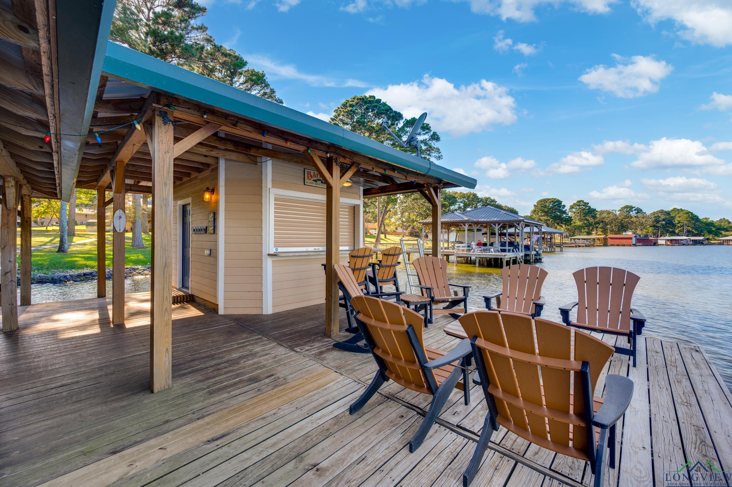 | Welcome to your East Texas lake retreat on beautiful Lake Palestine, just minutes from Tyler! This 4-bedroom, 2.5-bath updated home offers breathtaking east-facing views across the water, showcasing stunning sunrises and moonrises through walls of windows spanning both the main and lower levels. The inviting living area with vaulted, beamed ceiling features a wood-burning fireplace framed by custom built-ins and flows seamlessly into the dining area and kitchen—ideal for gathering with family and friends. The sunroom, where sliding windows open to create a screened porch, is the perfect place to relax and take in the tranquil lake views. The spacious primary suite on the main level offers a large walk-in closet and an updated bath with a walk-in shower. Step outside from the main level to the expansive deck, overlooking the shaded backyard and sparkling lake beyond. The lower level includes a second living area or game room with a built-in kitchenette, three additional bedrooms, and a full bath—perfect for guests or extended family. Enjoy easy access to the covered patio with sidewalk leading you down to the firepit and impressive boathouse featuring 2 boat stalls plus jet ski, all with electric lifts, an open deck for lounging, and a heated and cooled entertaining room complete with refreshment area and roll-up serving window. This home is located on a large, protected bay, perfect for inner-tubing and jet-skiing. Whether you’re boating, fishing, or simply soaking in the peaceful lakeside atmosphere, this home offers the ultimate in lakefront living and relaxation. Experience the beauty, comfort, and serenity of life on Lake Palestine! | |