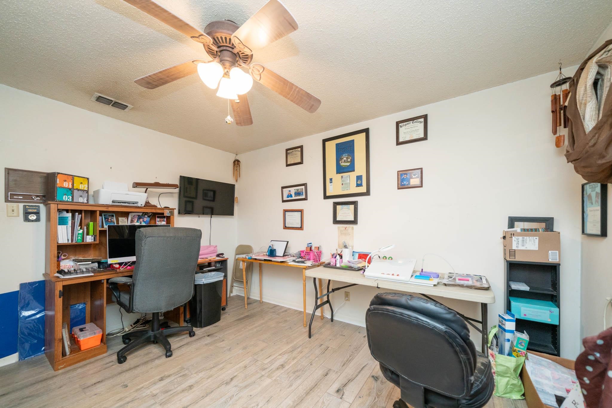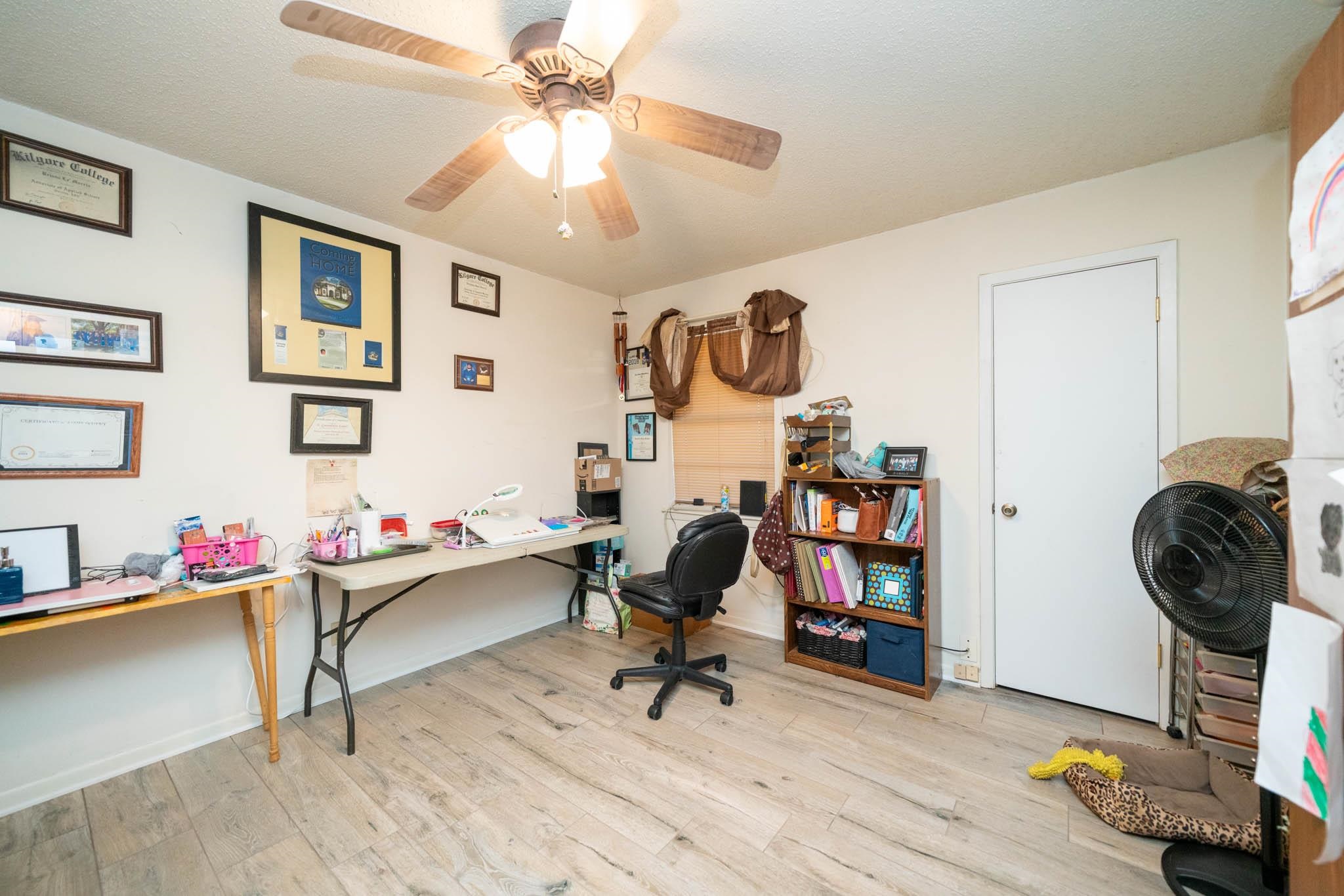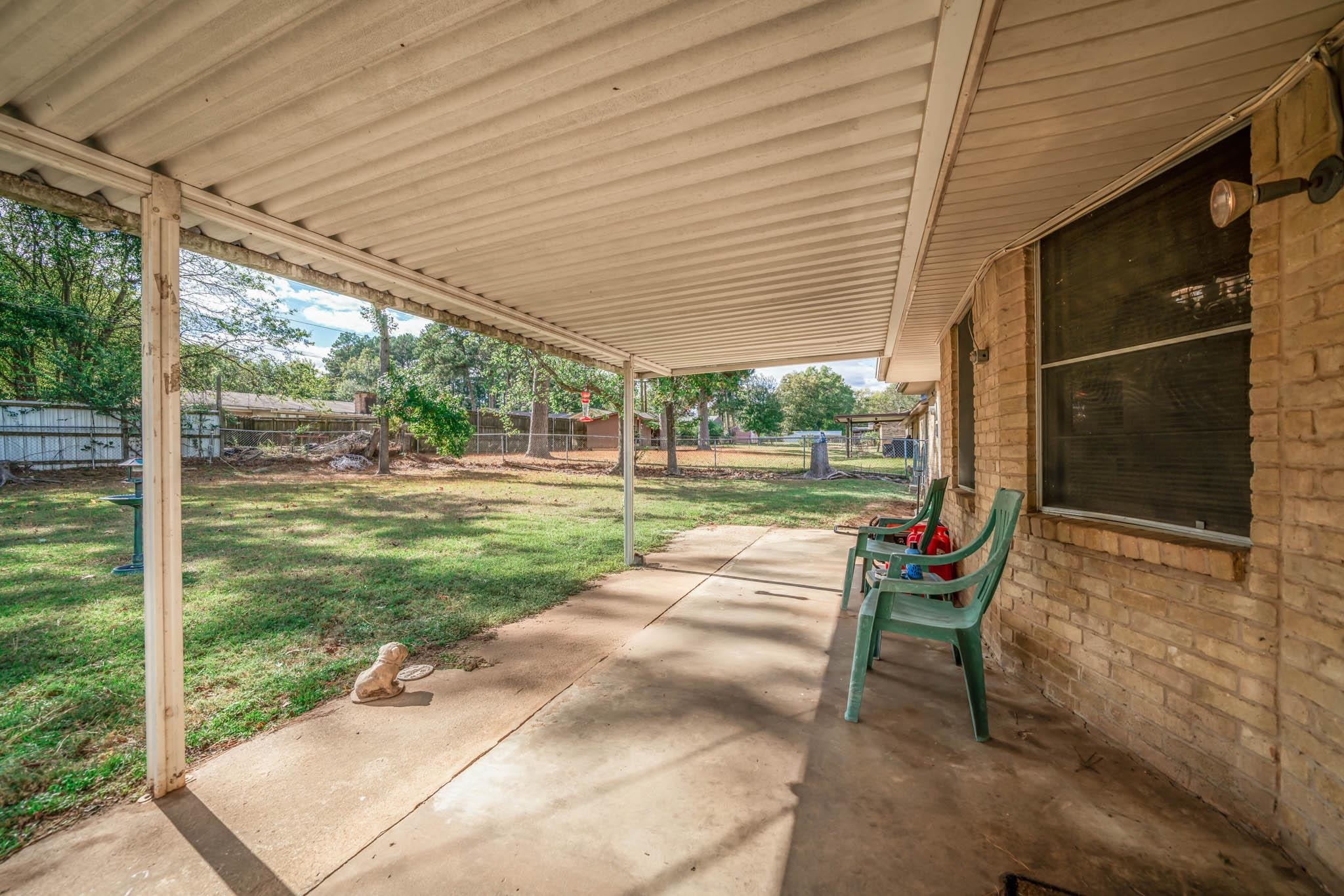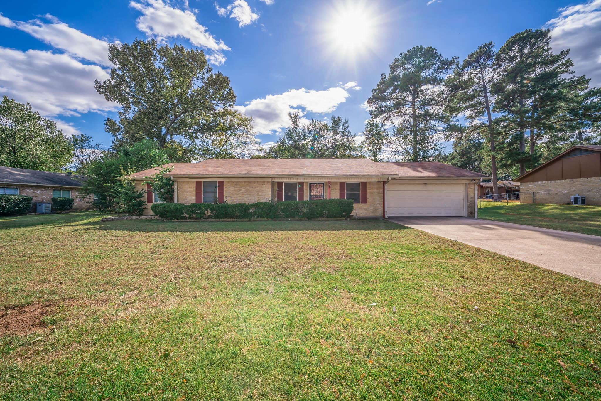 | Cute home in Pine Tree ISD. True 4 bedrooms, all good size. Just under 2,000 sq feet heated and cooled. The kitchen offers a galley style kitchen, breakfast nook and pantry. Large living room with fireplace and access to outside covered patio. Tile installed throughout except in formal dining. Well laid out floor plan with strategic storage. Spacious laundry area with additional storage. Primary bedroom has 2 closets and the bathroom has a step in style bathtub installed. Don't miss large storage closet in garage also. Large fenced back yard. | |