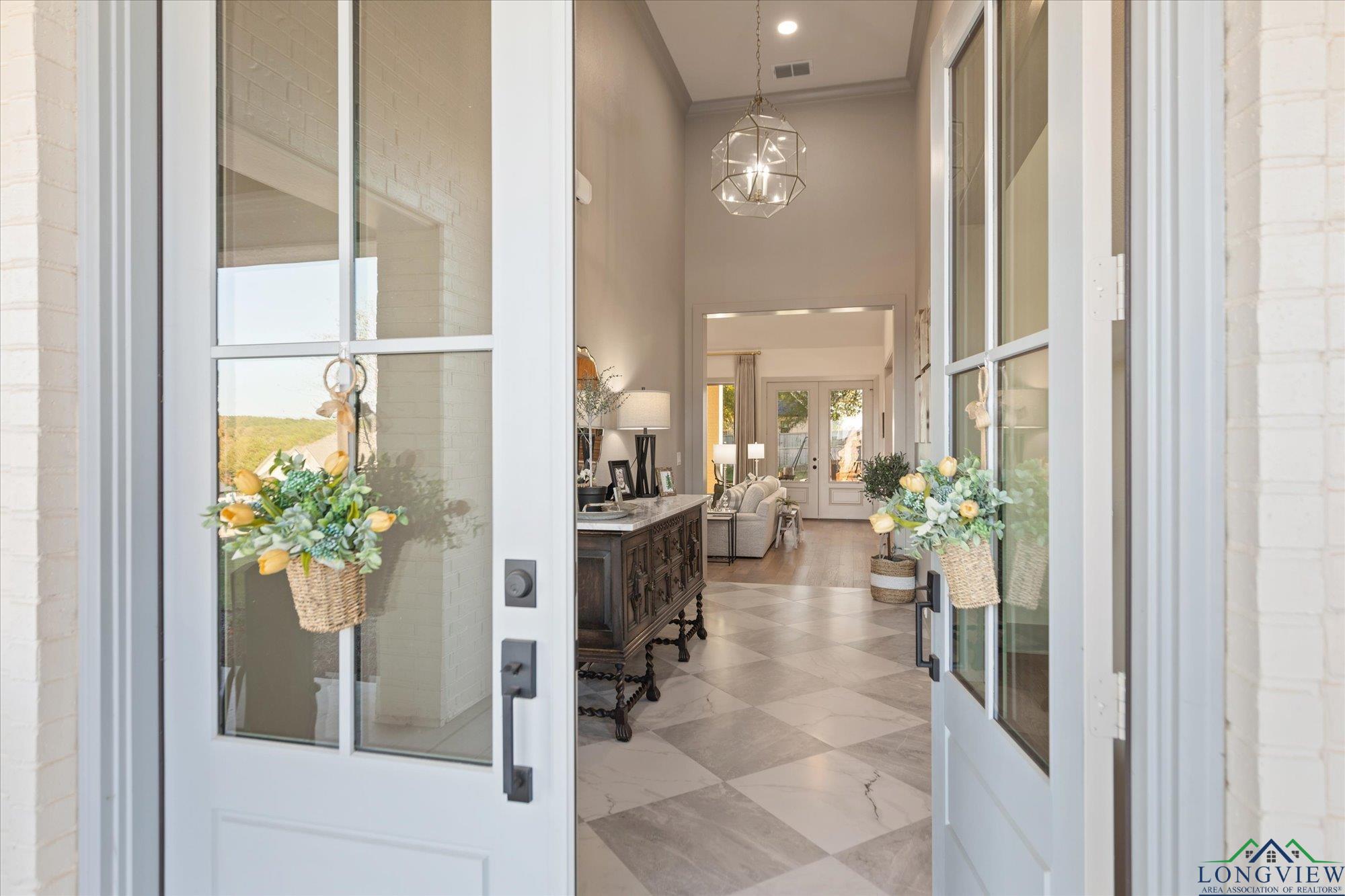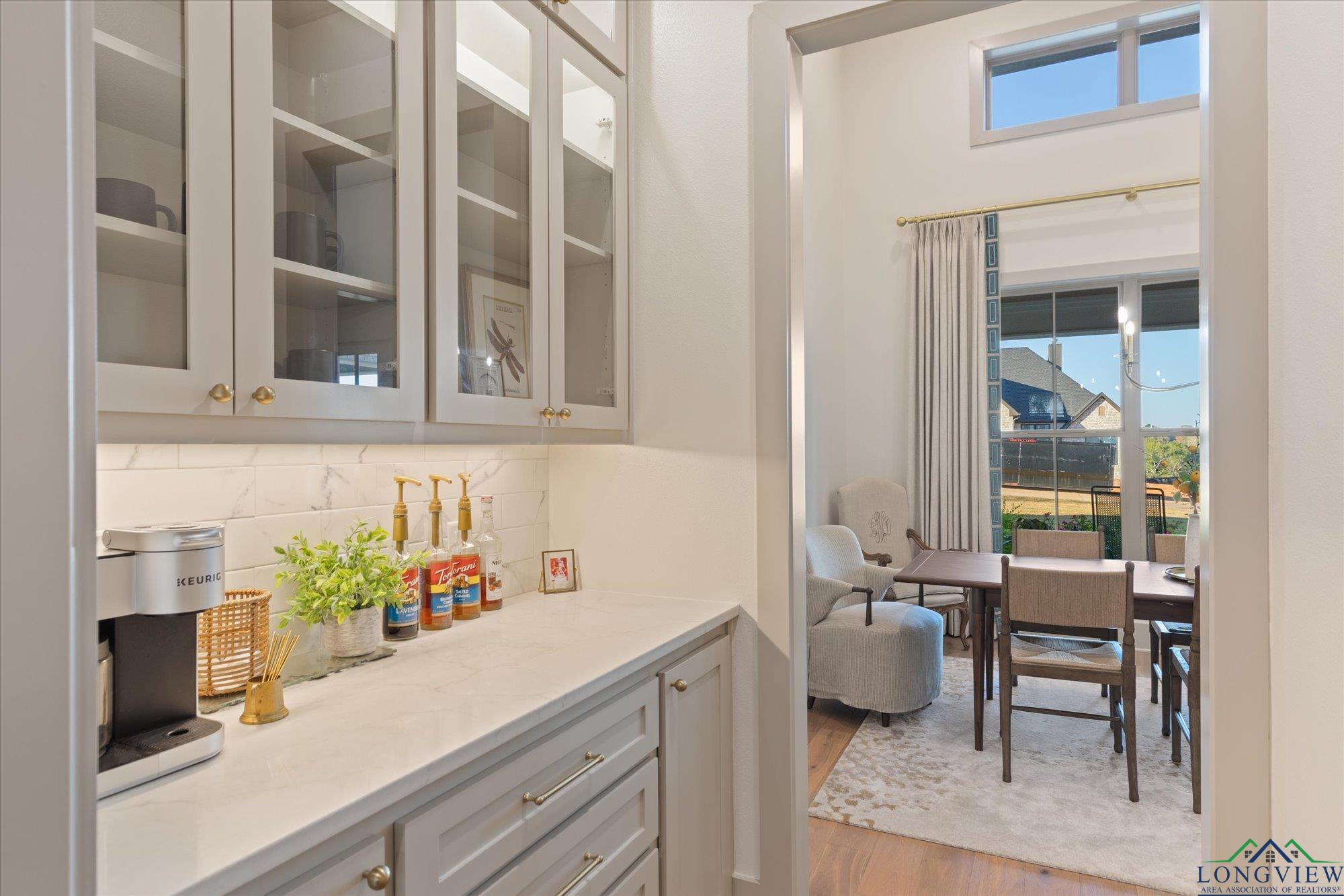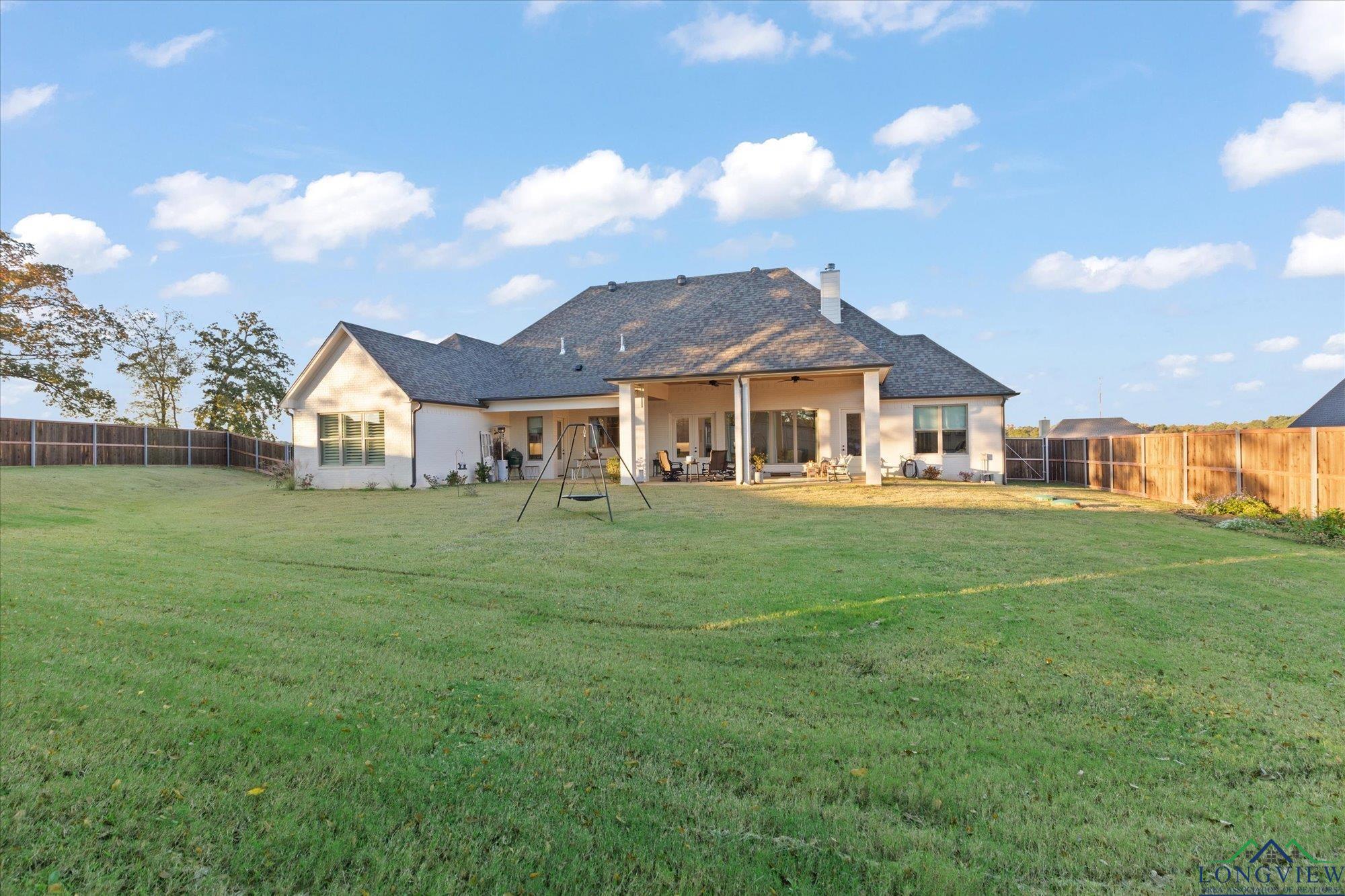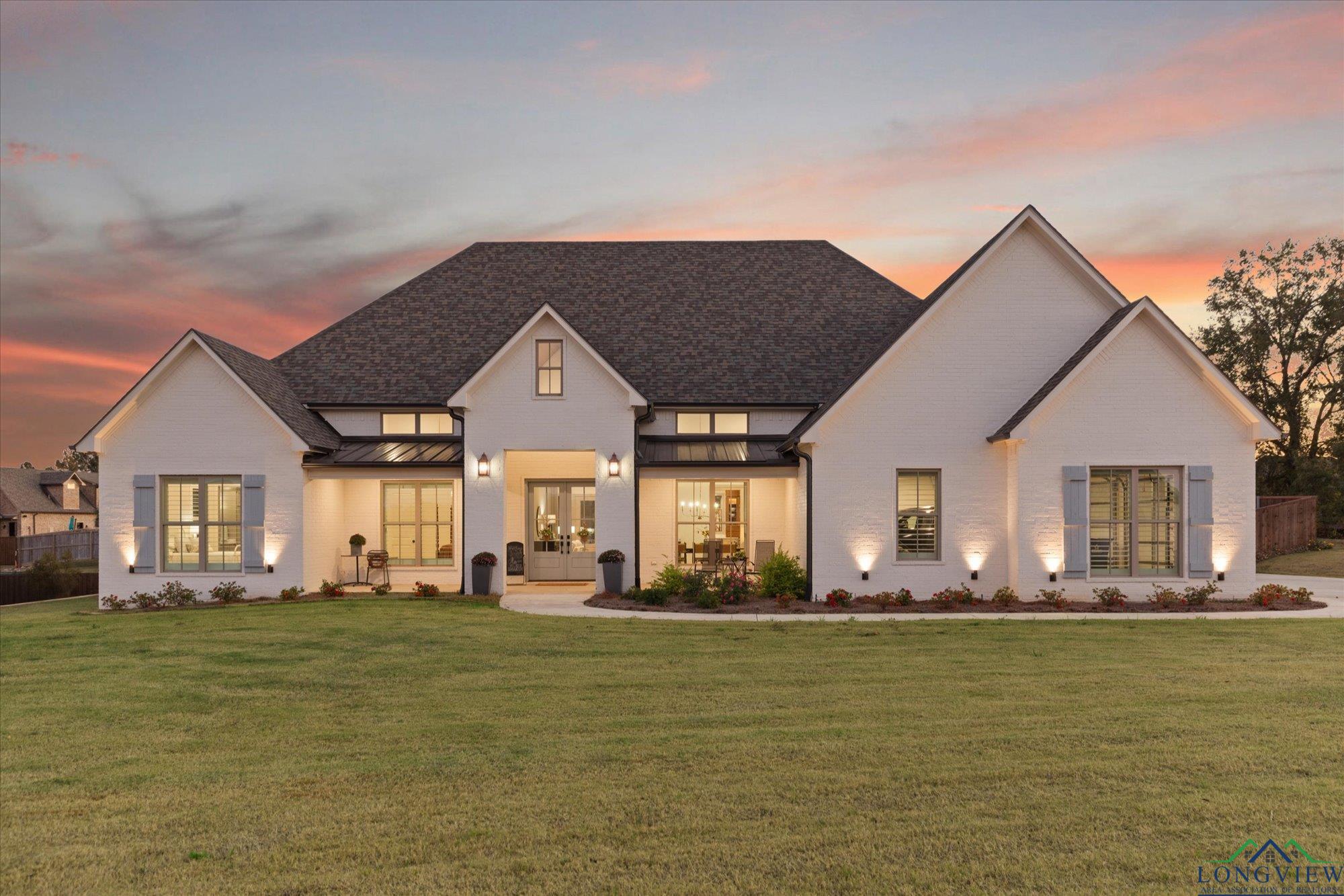 | Stunning 2024 Newland Properties home with designer finishes curated by WG Interiors. Located in the gated Hillcrest Trails community, this home offers a Longview address with award-winning Hallsville ISD schools. The open-concept layout features a gorgeous kitchen with quartz countertops, large island, gas range, wet bar with wine fridge, and a butler’s pantry. Beautiful dining room off the entry, high-end lighting, hardwood floors, custom draperies, and plantation shutters elevate the home throughout. The private primary suite includes a spa-like bath and a large walk-in closet with direct access to the laundry room. Additional highlights include a whole-home generator, two tankless gas water heaters, designer bathroom finishes, and a spacious 0.8-acre lot. Enjoy the oversized covered patio and a three-car garage. Luxury, comfort, and impeccable craftsmanship—PERFECTION! | |
