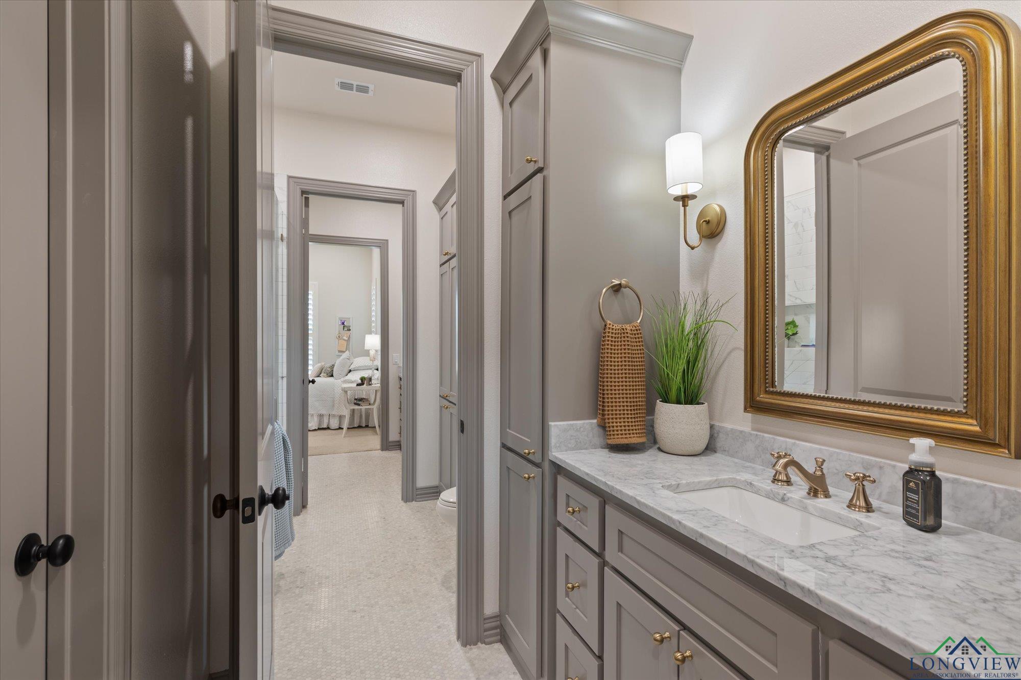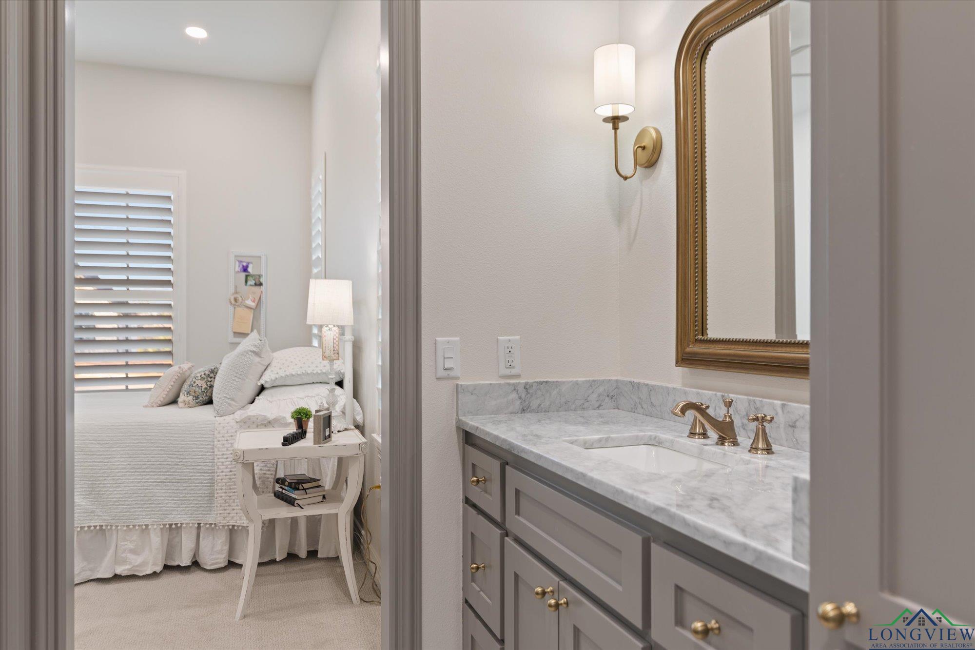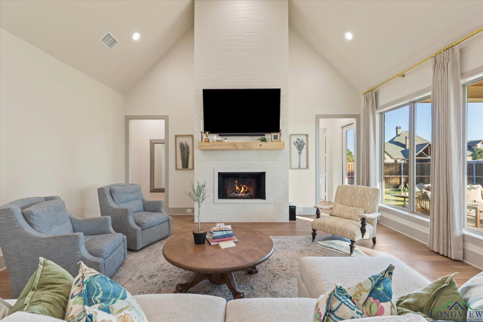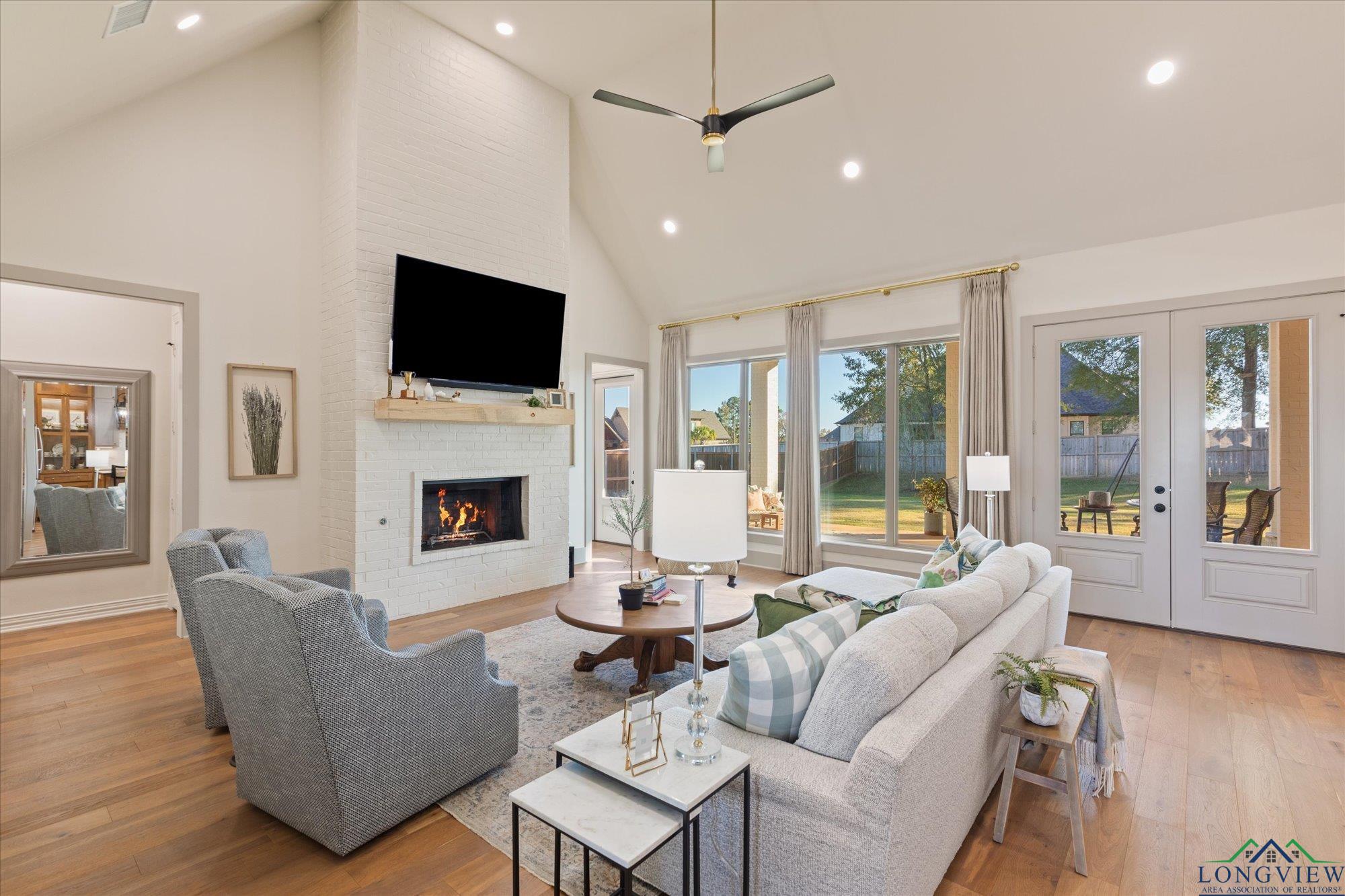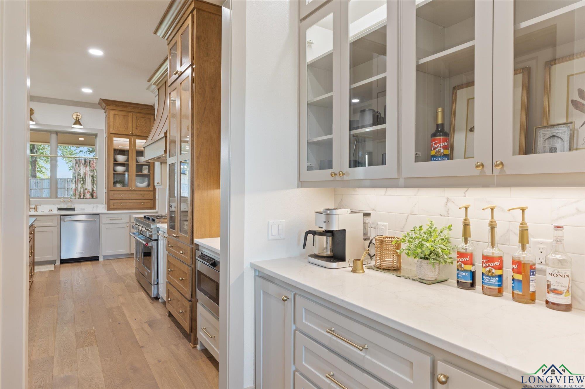 | Stunning 2024 Newland Properties home with designer finishes curated by WG Interiors. Located in the gated Hillcrest Trails community, this home offers a Longview address with award-winning Hallsville ISD schools. The open-concept layout features a gorgeous kitchen with quartz countertops, large island, gas range, wet bar with wine fridge, and a butler’s pantry. Beautiful dining room off the entry, high-end lighting, hardwood floors, custom draperies, and plantation shutters elevate the home throughout. The private primary suite includes a spa-like bath and a large walk-in closet with direct access to the laundry room. Additional highlights include a whole-home generator, two tankless gas water heaters, designer bathroom finishes, and a spacious 0.8-acre lot. Enjoy the oversized covered patio and a three-car garage. Luxury, comfort, and impeccable craftsmanship—PERFECTION! | |
