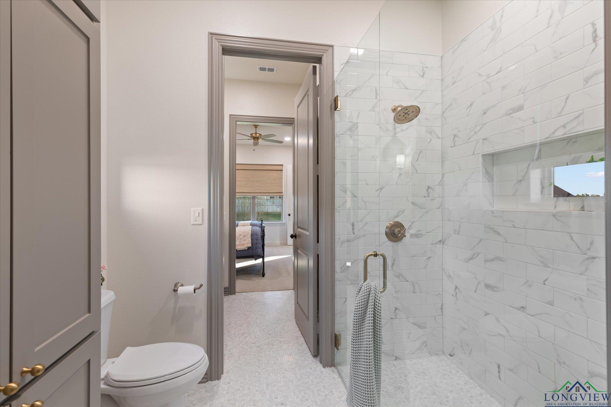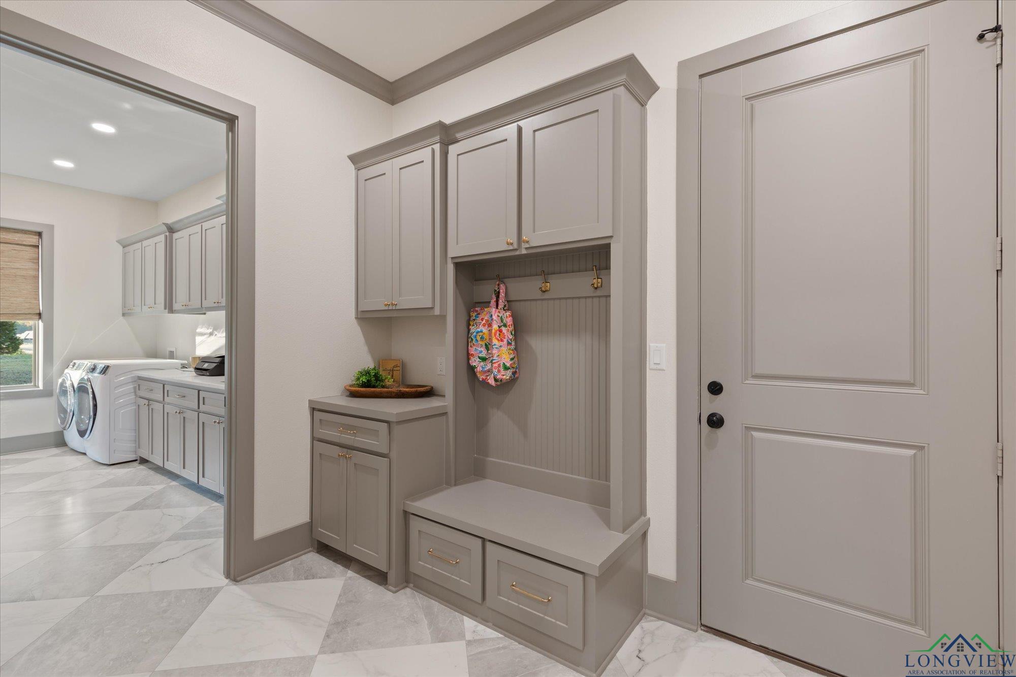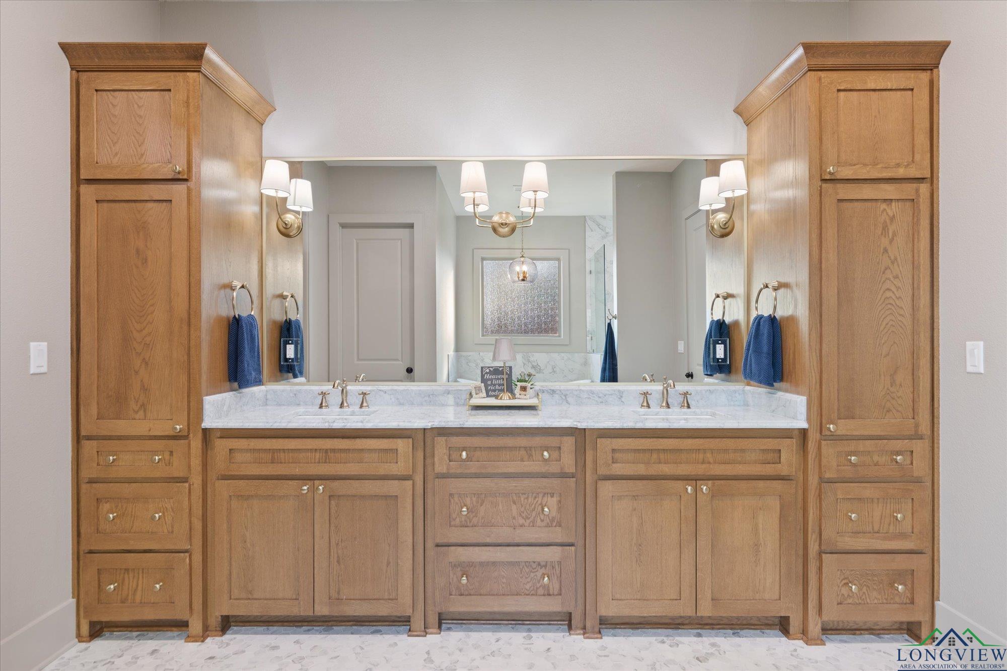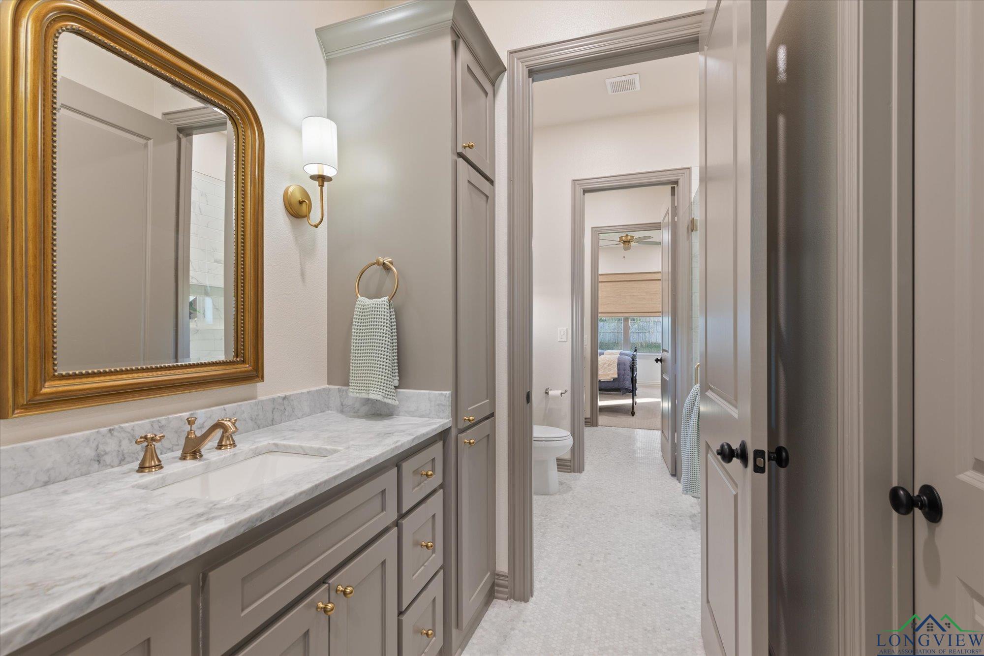 | Stunning 2024 Newland Properties home with designer finishes curated by WG Interiors. Located in the gated Hillcrest Trails community, this home offers a Longview address with award-winning Hallsville ISD schools. The open-concept layout features a gorgeous kitchen with quartz countertops, large island, gas range, wet bar with wine fridge, and a butler’s pantry. Beautiful dining room off the entry, high-end lighting, hardwood floors, custom draperies, and plantation shutters elevate the home throughout. The private primary suite includes a spa-like bath and a large walk-in closet with direct access to the laundry room. Additional highlights include a whole-home generator, two tankless gas water heaters, designer bathroom finishes, and a spacious 0.8-acre lot. Enjoy the oversized covered patio and a three-car garage. Luxury, comfort, and impeccable craftsmanship—PERFECTION! | |
