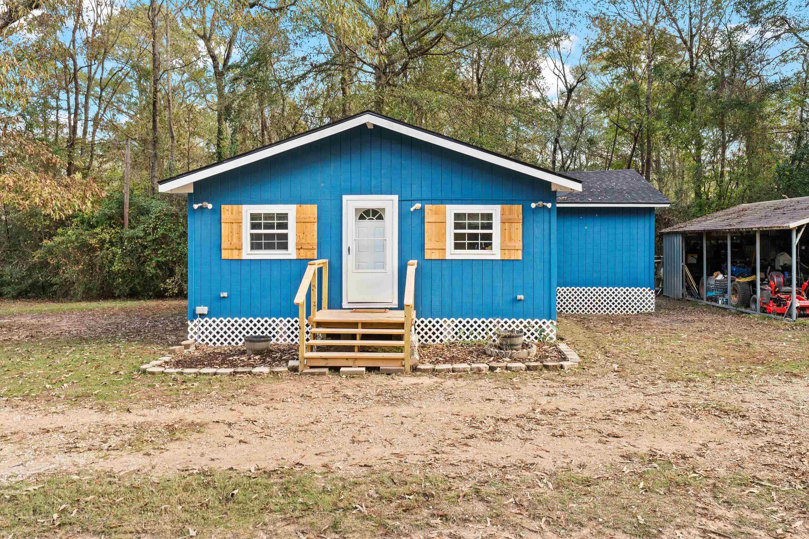 | Welcome to your perfect East Texas getaway! This cozy 2 bedroom, 2 bathroom home sits on a spacious 1.24-acre deeded lot right across the street from beautiful Lake Murvaul, offering the ideal blend of privacy, comfort, and lakeside living. Step inside to an inviting open-concept living, kitchen, and dining area featuring vaulted ceilings, warm wood cabinetry, and plenty of natural light. The kitchen provides functional counter space and cabinetry, while the living area is spacious enough for both relaxing and entertaining. Both bedrooms are well-sized, and each bathroom is thoughtfully designed, making this home perfect for a full-time residence, or weekend retreat. Outside, enjoy the peaceful wooded surroundings, a large yard for outdoor activities, and a covered parking area. The bold blue exterior gives the home a charming, updated look while maintaining that classic East Texas feel. Located Just steps from Lake Murvaul, perfect for fishing, boating, or simply soaking in the serene views. Whether you’re dreaming of lake living, looking for a quiet homestead, or investing in a vacation property, this one checks all the boxes! | |
