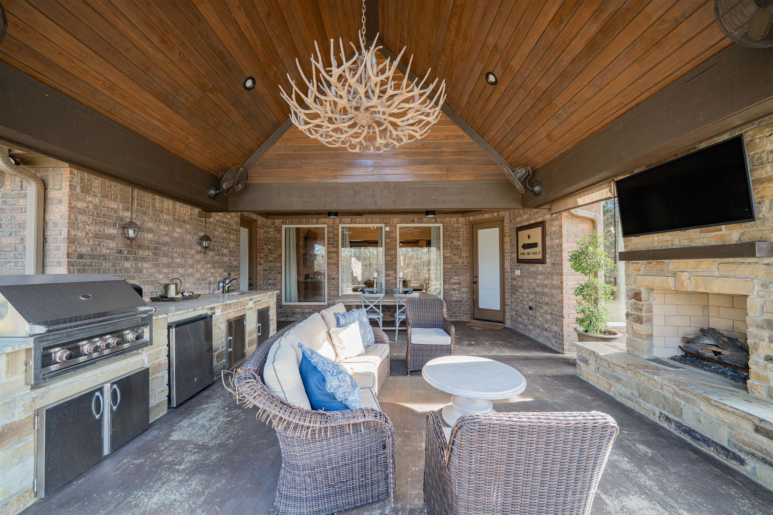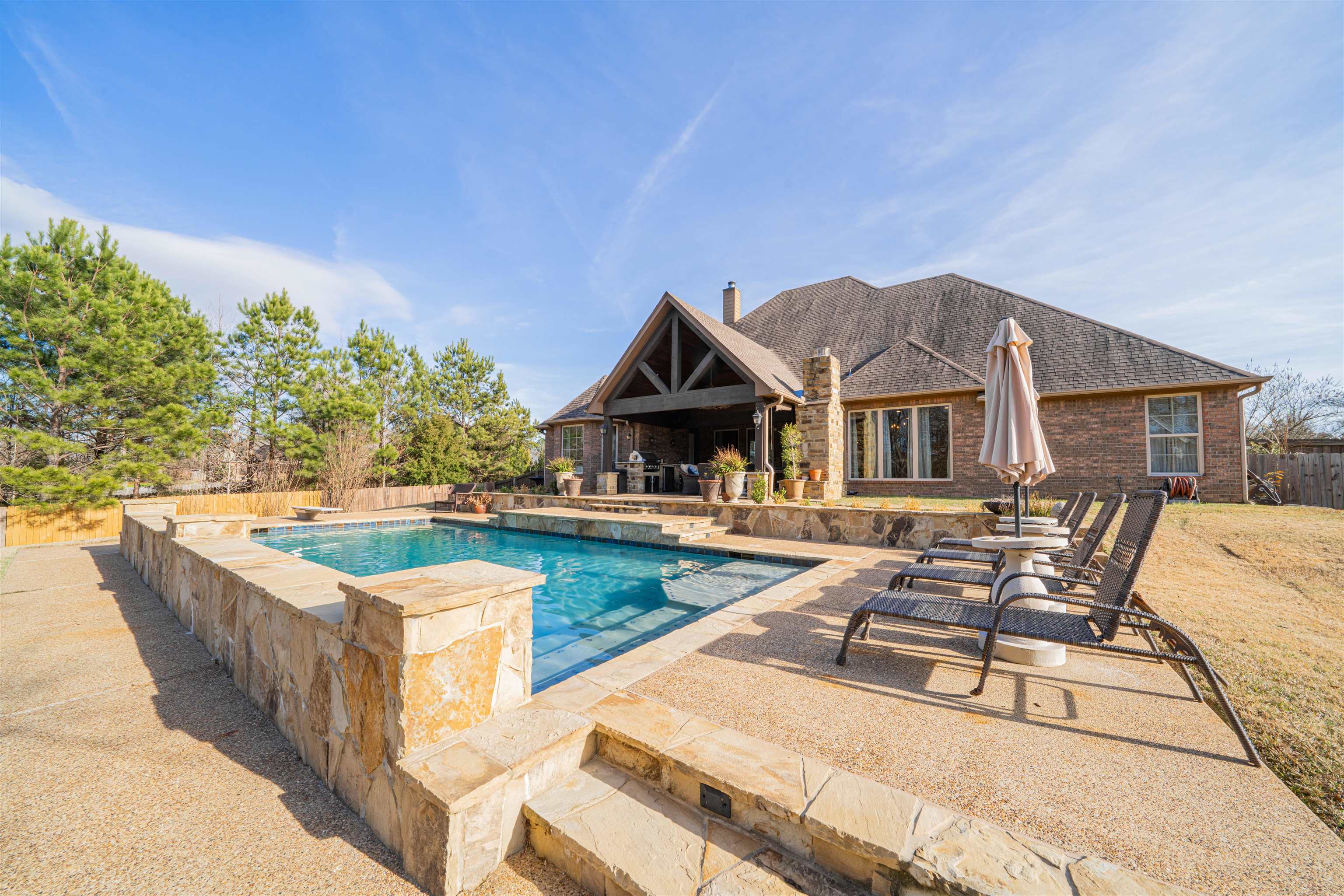 | Check out this stunning home located in the gated Timber Falls subdivision—just 10 minutes from the heart of Longview and zoned to Hallsville ISD. From the moment you step inside, you’ll notice the pride of ownership and thoughtful design that make this home truly special. This spacious 4-bedroom, 3-bathroom home features an ideal layout for families of all sizes. Two bedrooms share a convenient Jack-and-Jill bathroom, while a third bedroom offers its own private full bath—perfect for guests or teens. The primary suite is privately positioned, creating a peaceful retreat. Upstairs, a large bonus room provides endless possibilities as a game room, TV room, home office, or even a potential fifth bedroom. Elegant details are found throughout the home, including exquisite crown molding, vaulted ceilings, recessed lighting, beautiful chandeliers, built-in shelving and cabinetry, and carefully curated personal touches that elevate every space. The living areas flow seamlessly, making this home ideal for everyday living and entertaining alike. The kitchen features double ovens, granite countertops, a large pantry, an eat-in dining area, and bar seating, all opening to the main living space. A formal dining room at the front of the home adds even more flexibility for hosting family and friends. Step outside to your private backyard oasis -a true stand-out of this property- featuring a large covered patio, full outdoor kitchen, and a stunning saltwater pool—perfect for East Texas summers and year-round entertaining. And don’t miss the show-stopping antler chandelier, a unique statement piece that adds warmth and character you won’t soon forget. This home checks every box—space, style, comfort, and location—all within a beautiful gated community. Schedule your private showing and experience 130 Ashbriar Lane for yourself. | |