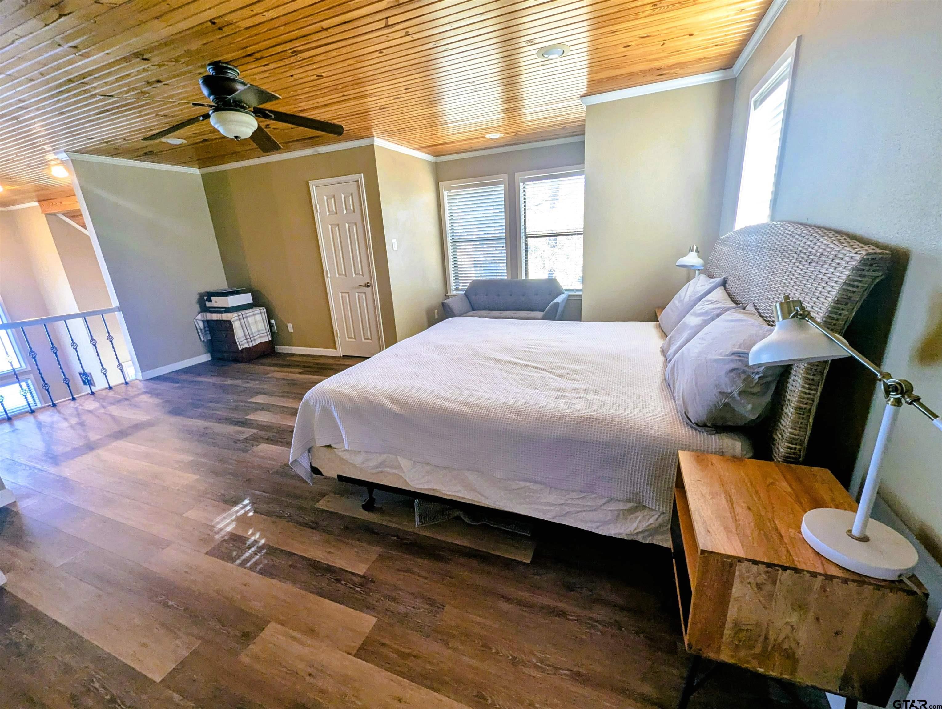 | Delightful 3/2/2 waterfront on West side of Lake Jacksonville. Built in 2000 with over half an acre (.611 acre), this 1718 SF, story and a half lake home with gorgeous panoramic views of the lake from great room, kitchen, dining, and master bedroom is on the quiet, northern side of Lake Jacksonville, yet with plenty of deep water. For the fisherman, the boat house sits just yards from a well-known Crappie hole where you can fish right off the dock or put your boat right next to the fishing site. Great access to town and only one mile off Hwy 79. Plenty of parking space with 2 car garage plus an enclosed workshop to left of garage the size of a one car garage space. Huge storage area with complete floored attic space above workshop and 2 car garage area. Wonderful open concept design. Perfect for second home or full-time living. Large shaded back deck; boathouse comes with boat lift and 2 jet ski pads/ramp, and storage for your lake toys. Refrigerator, washer, and dryer to convey with acceptable offer. Master suite with two walk-in closets. Hidden, hallway laundry. Everything is here for living on one of the best kept secrets in East Texas, Lake Jacksonville. Call today for your private showing. | |