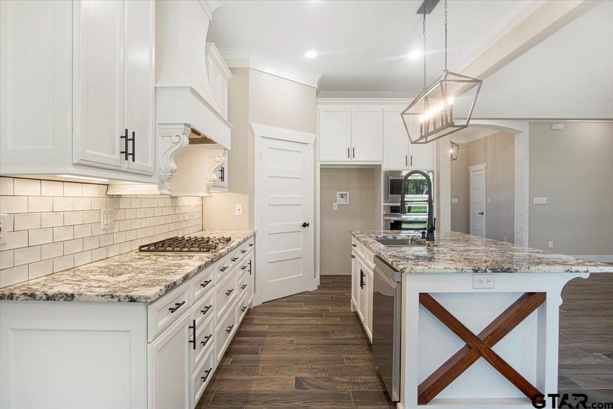 | Showstopper New Construction! This beautiful property boasts 4 bedrooms, 2.5 baths and sits on a half acre lot. It's located in the award winning Lindale ISD with convenient access to I-20, Lindale and Tyler! The builder has meticulously attended to every detail, ensuring a home that delights at every turn. From its striking curb appeal, enhanced by elegant lighting in the exterior front of the house, to its custom interior finishes, this home is sure to impress. There are so many features that make this property stand out from the rest: Bright and airy open floorplan with neutral paint colors that create a warm and inviting atmosphere, large windows , vaulted ceilings with beautiful exposed wood beams, built ins and more! The kitchen provides all the essentials and lacks nothing: stainless steel appliances, granite countertops, a large island perfect for hosting, pantry and dining area. Relax in the Primary Suite and enjoy the ensuite Bath with dual sinks, shower, soaking tub and large walk in closet! The Utility Room is a generous size with granite countertops and upper and lower cabinets. Ready for a quiet night in? Enjoy the covered backyard patio that features an eye catching stained wood ceiling. This beautifully crafted home truly has it all! With its stunning design and beautiful features, this home is a must-see! | |